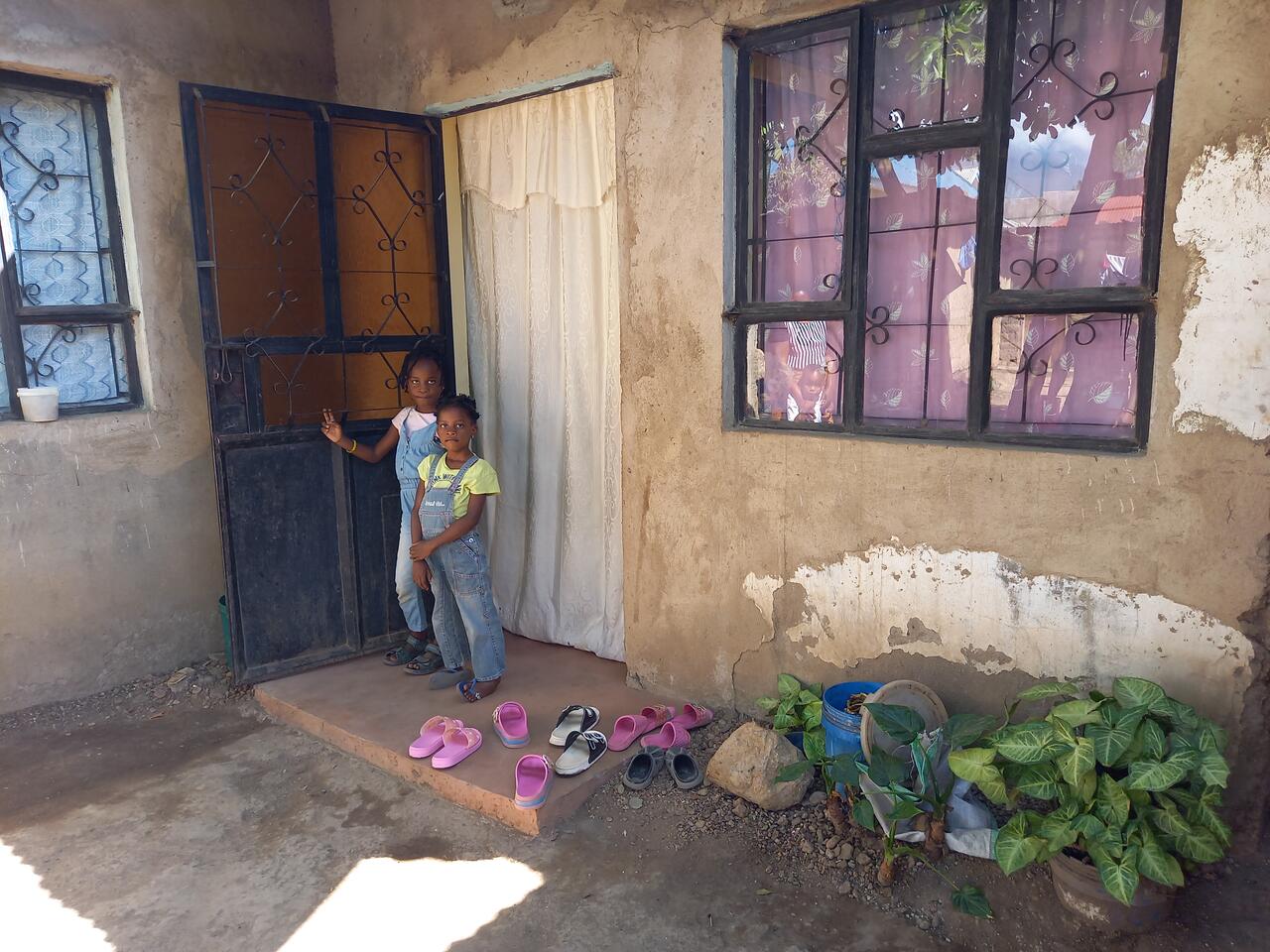 Dann besuchen wir Esther und Elisabeth. Für diese beiden Mädchen haben wir Paten, die Ihnen den Besuch einer Privatschule ermöglichen. Die Beiden sind Cousinen und leben bei ihrer Uroma - Bibi. Bisher haben sie in der schmalen Gasse neben dem Tuleane gewohnt. Doch nun sind sie umgezogen. Sie bewohnen mit sieben Personen eine Zweiraumwohnung. Dusche und Toilette wird mit anderen Familien geteilt. Alles ist sehr einfach und dennoch eine Verbesserung zu den bisherigen Wohnverhältnissen.