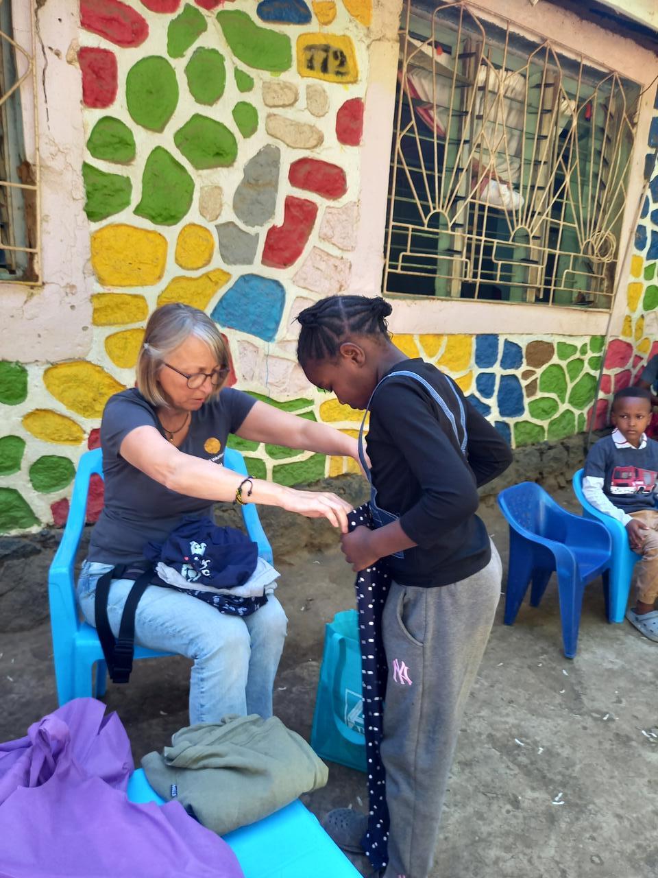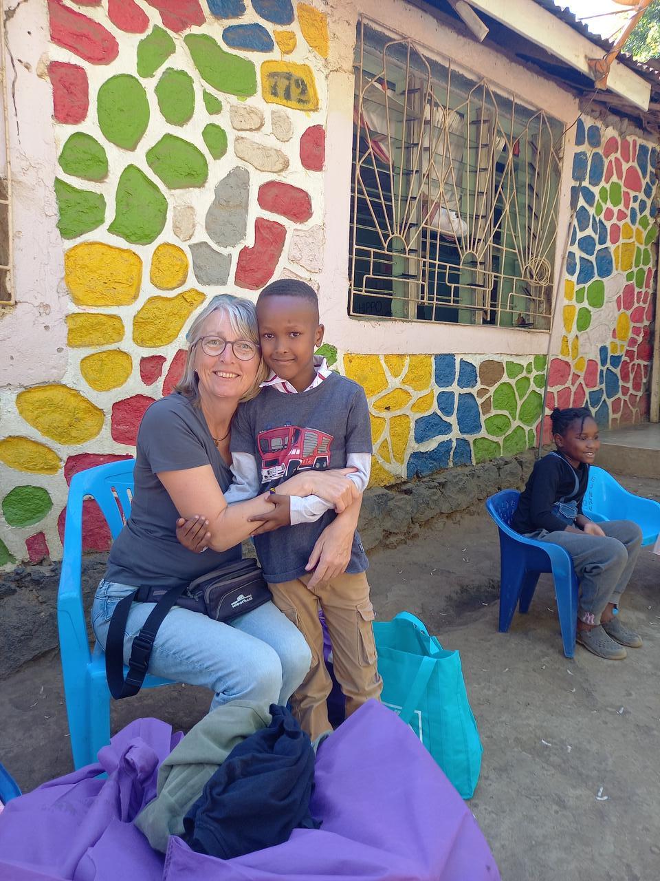 Ich verteile die Kleidung und mein kleines Geschenk an die Eltern. Das alles wird durch unseren Verein finanziert bzw. bekommen wir die Kleidung stets gespendet. Hier lösst das alles viel Freude aus.