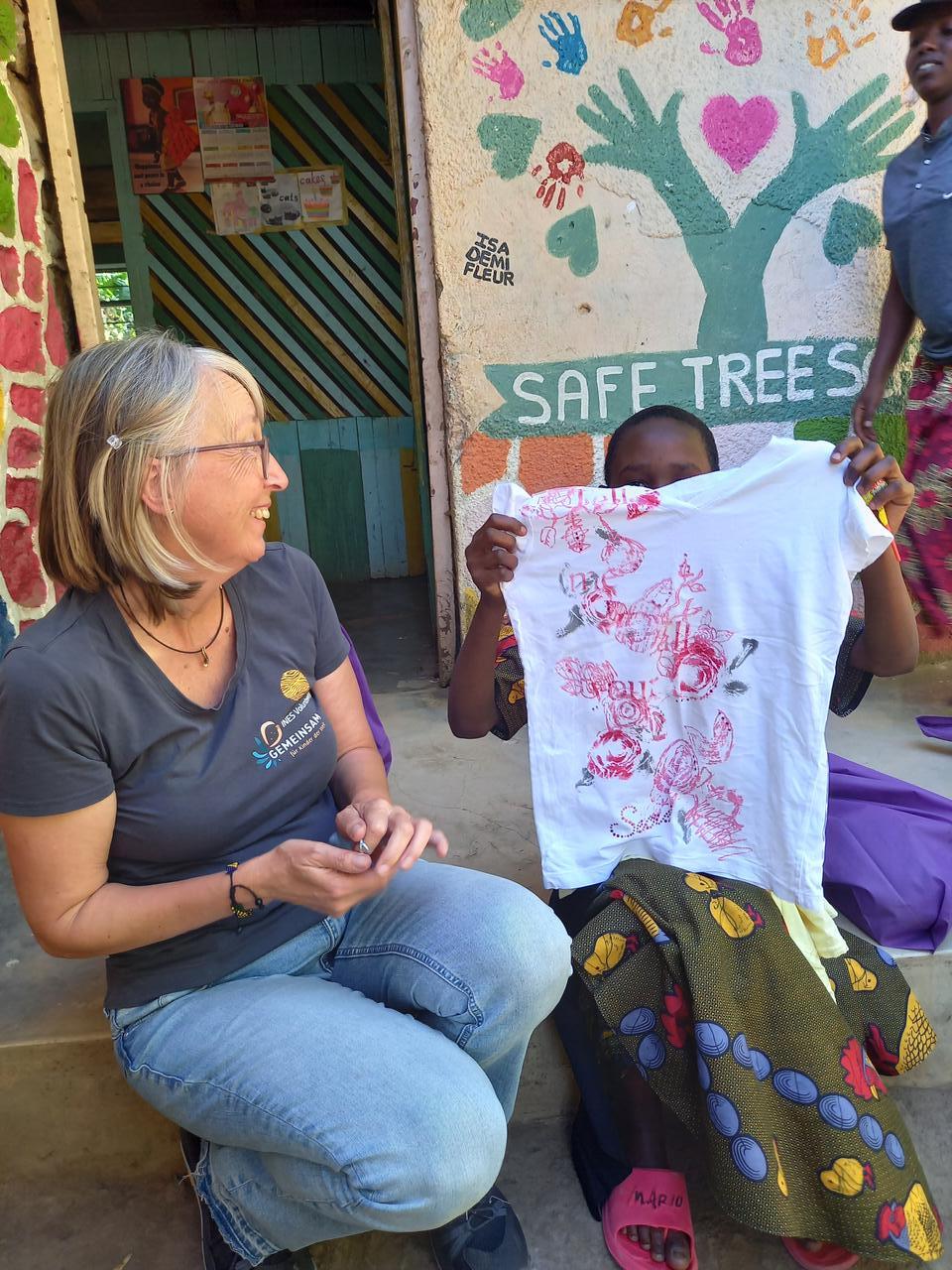 Dieses Massai Mädchen lebt auch bei Tina. Ich kenne sie bereits seit zwei Jahren. Ihre Freude ist ganz besonders groß, als sie zwei T-Shirts und eine Leggins erhält.