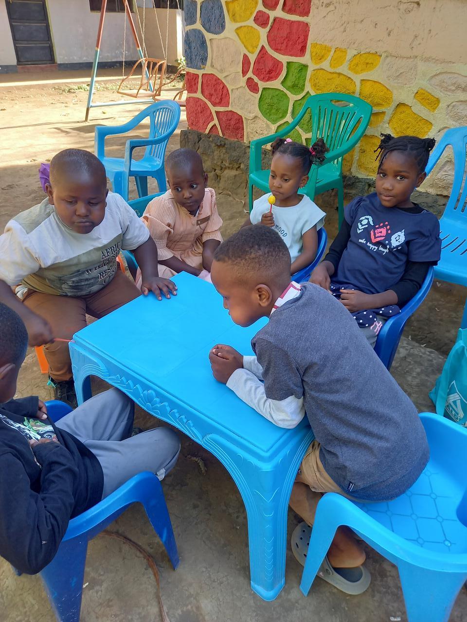 Es sind noch einige Kinder aus der Nachbarschaft gekommen und so wird die Soda geteilt und jedes Kind bekommt einen Lolly.