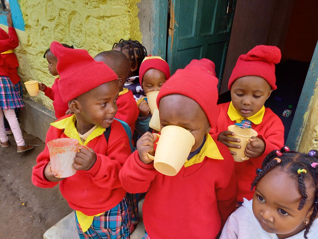 Ich wurde mit offenen Armen und leuchtenden Augen empfangen. Dann wurde getanzt und gesungen. Ein schöner Start in den Tag!