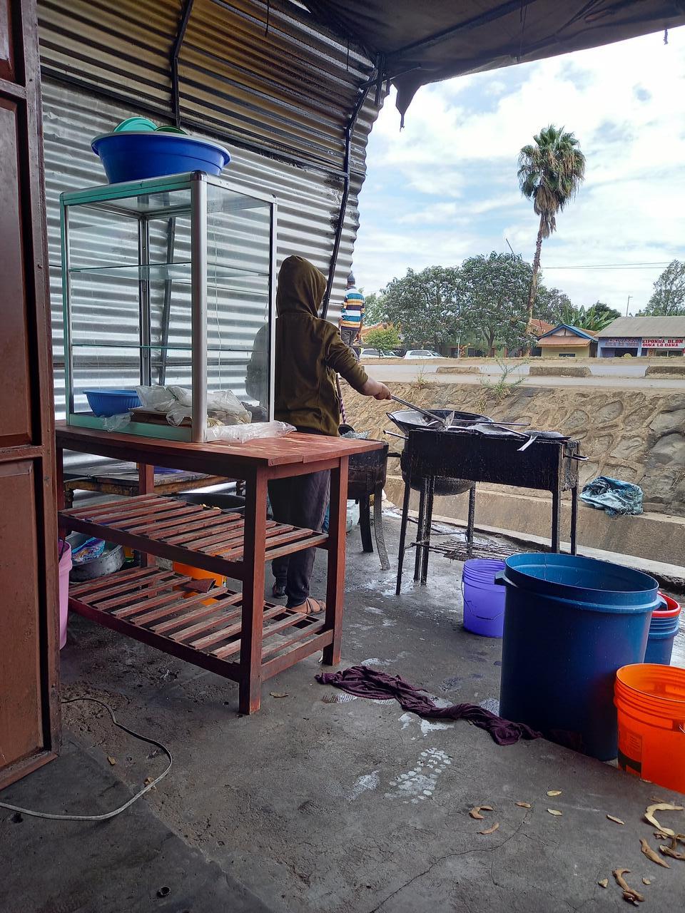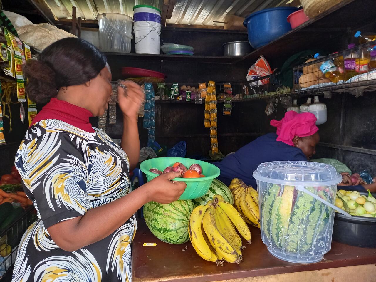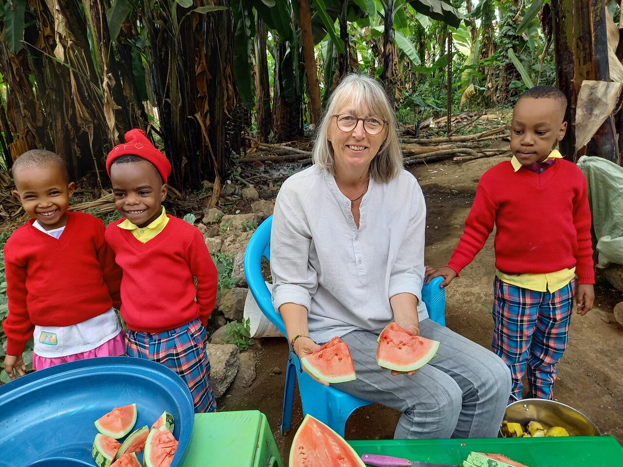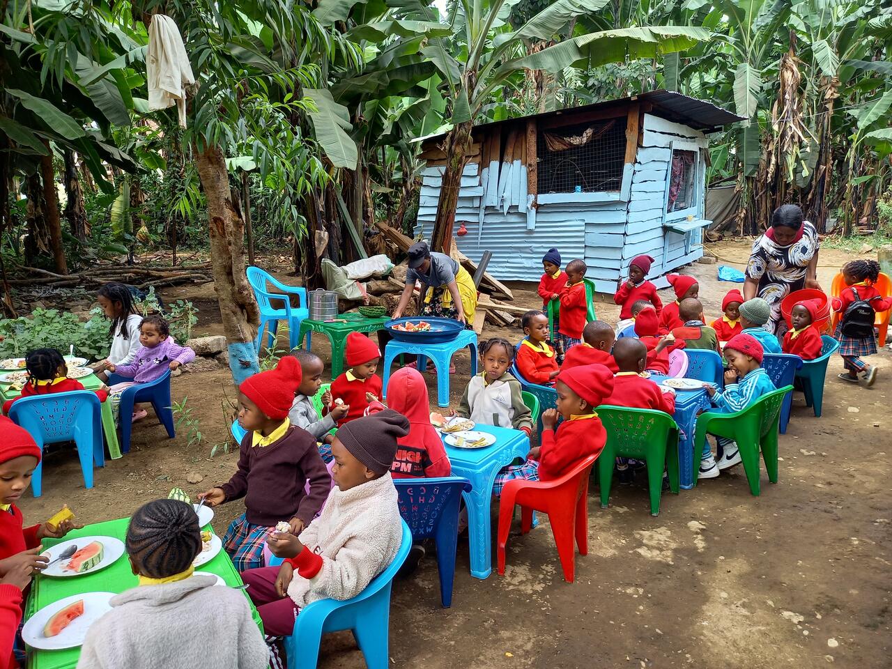 Kaum zurück im Day Care teile ich die Früchte in Stücke und werde dabei von erwartungsvollen Augen beobachtet.