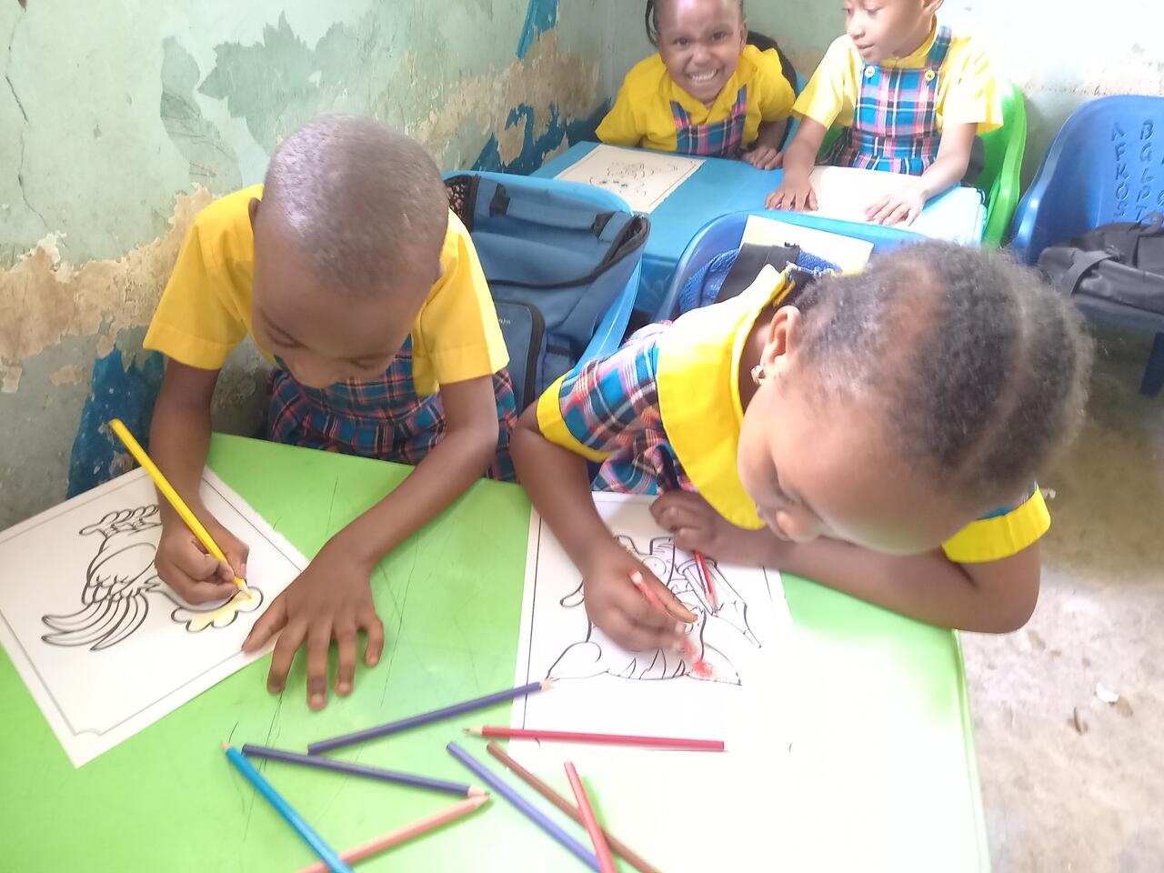 In der letzten Stunde wird gemalt. Die Kinder haben eine riesen Freude an meinem mitgebrachten Malbuch.