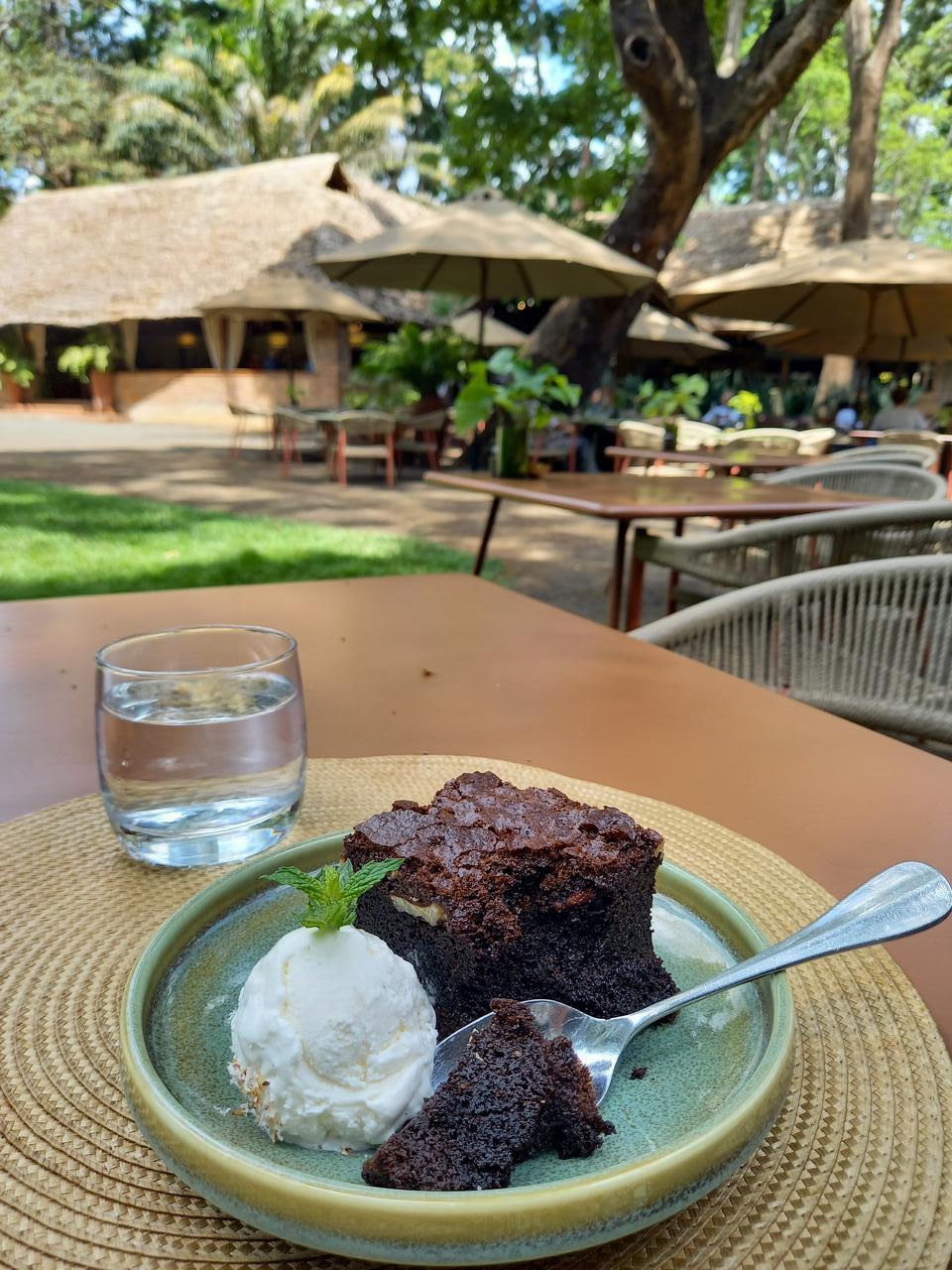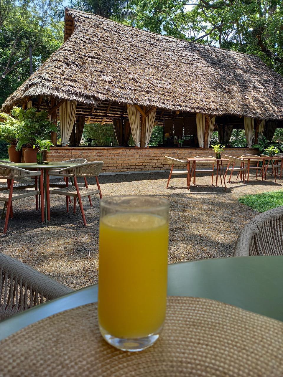 Ich suche Erholung unter den riesigen Bäumen der Lodge. Die Luft ist angenehm kühl und die Ruhe tut gut. Außerdem gönne ich mir ein gutes Essen.