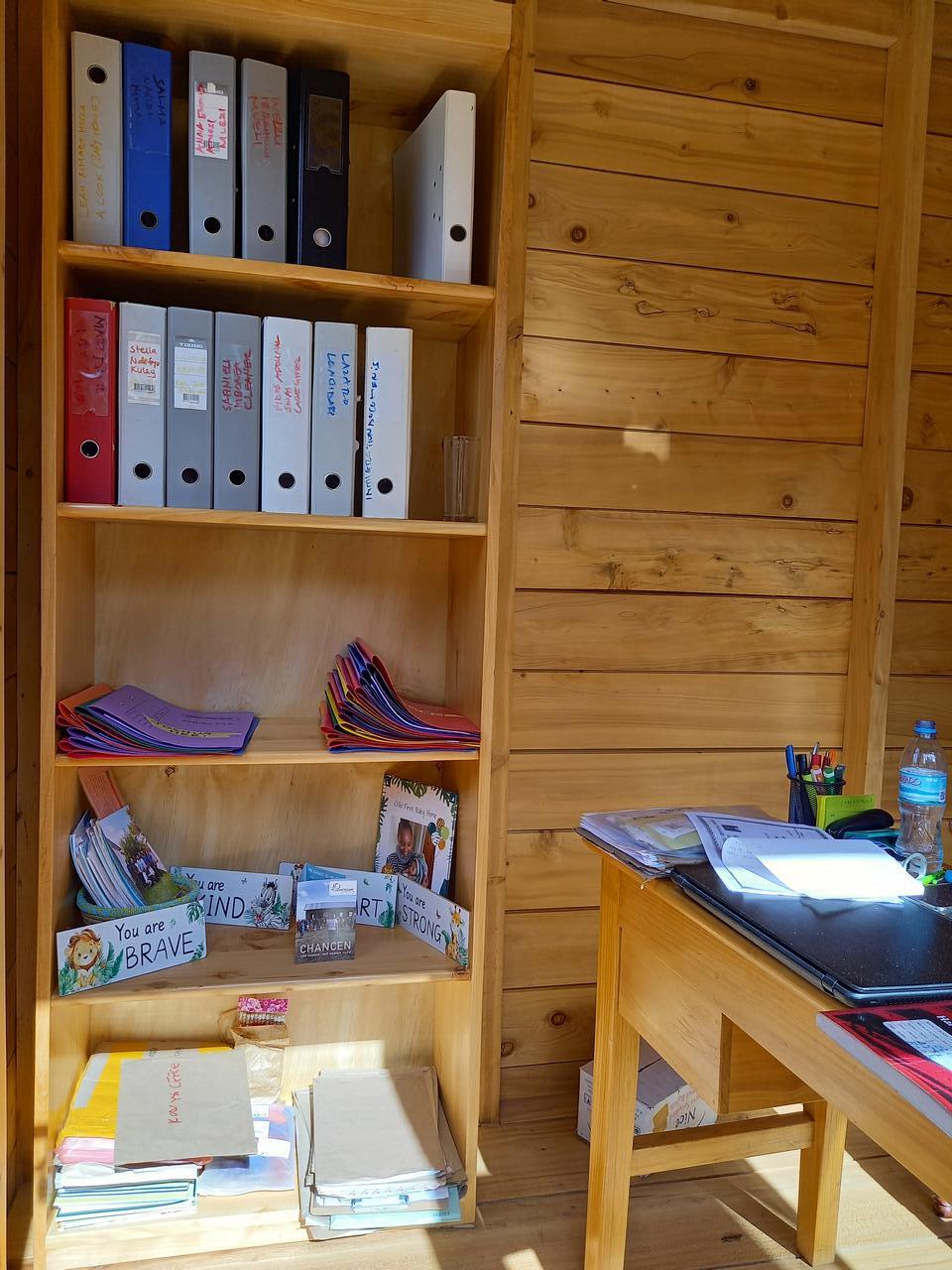 Gleich bei meiner Ankunft ist mir aufgefallen, das im Büro von Nuruana sämtliche Ordner und Papiere auf dem Boden liegen - ein unhaltbarer Zustand. Sie sagte das sie irgendwann gern ein Regal hätte. Ich habe mich dann wenig später auf den Weg zum Tischler meines Vertrauens gemacht und ein Regal in Auftrag gegeben. Ich habe ihn gebeten es geheim zu halten.