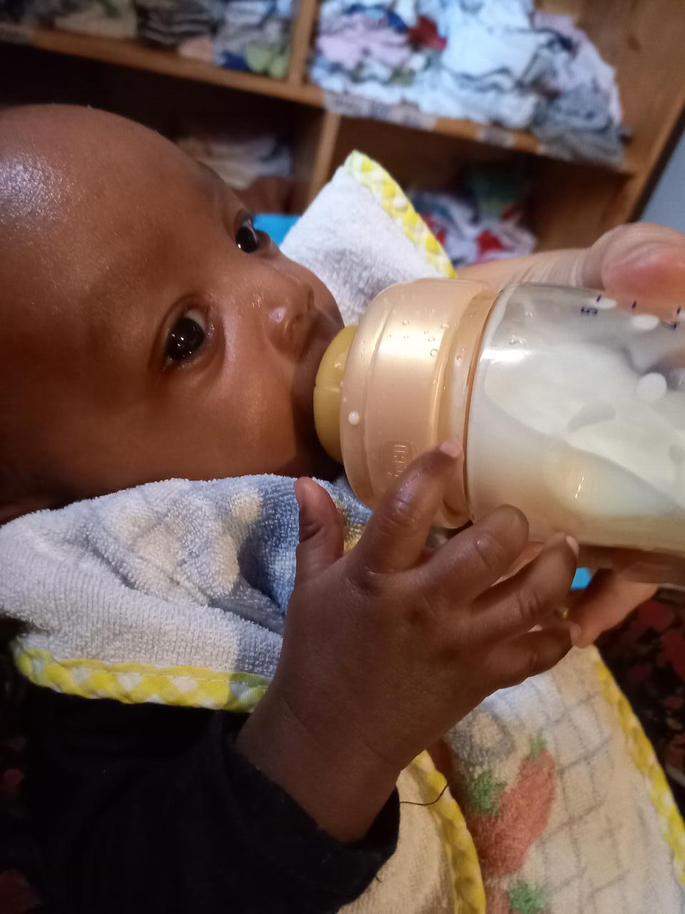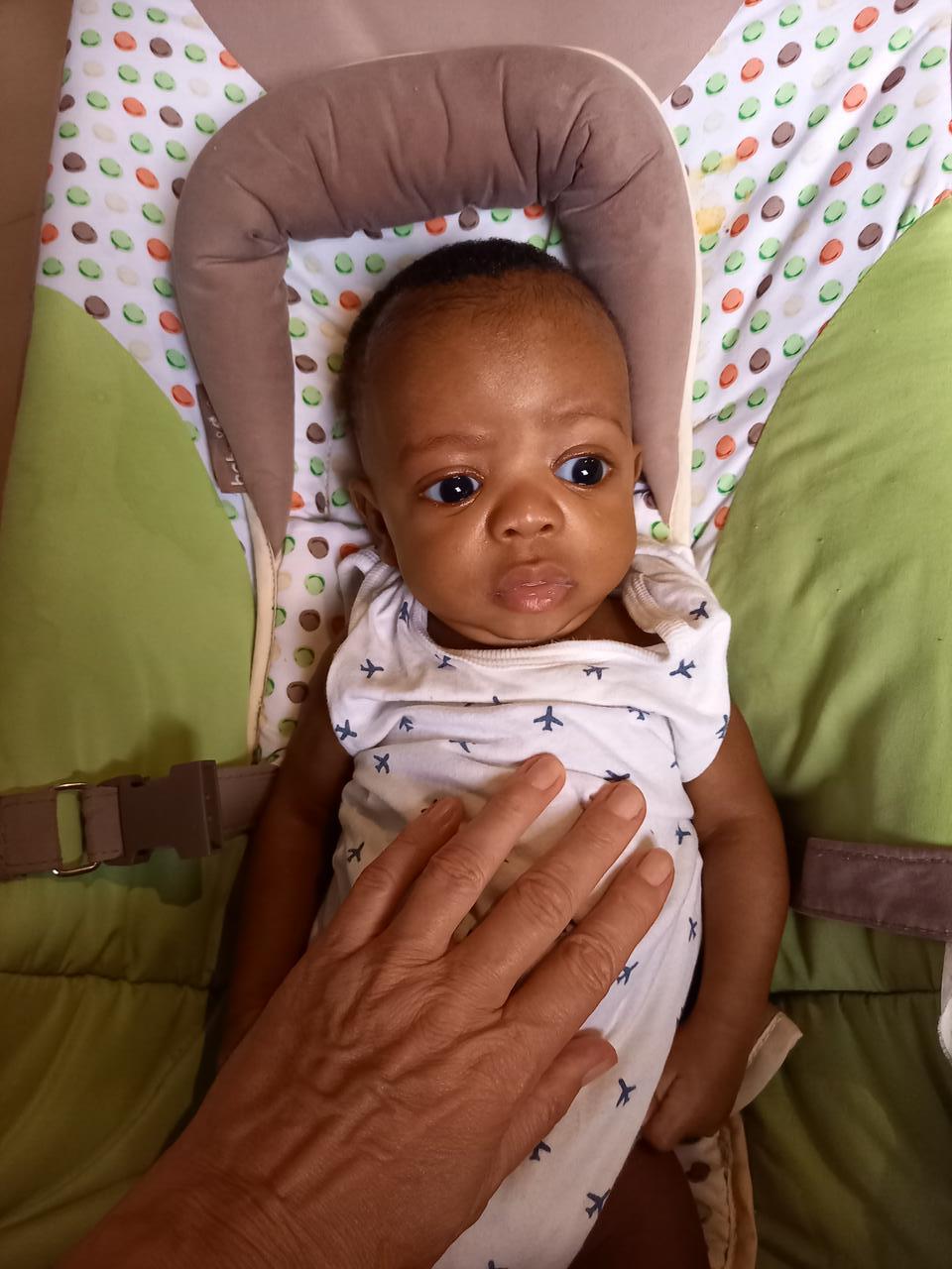 Ich drehe eine Runde, um mich bei den Kleinen zu verabschieden. Das ist Gift, er ist als erstes Baby in unsere Einrichtung gekommen.