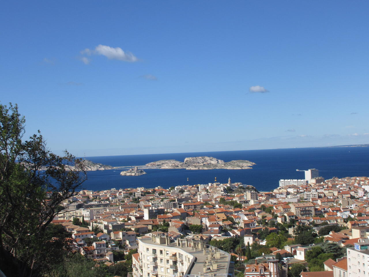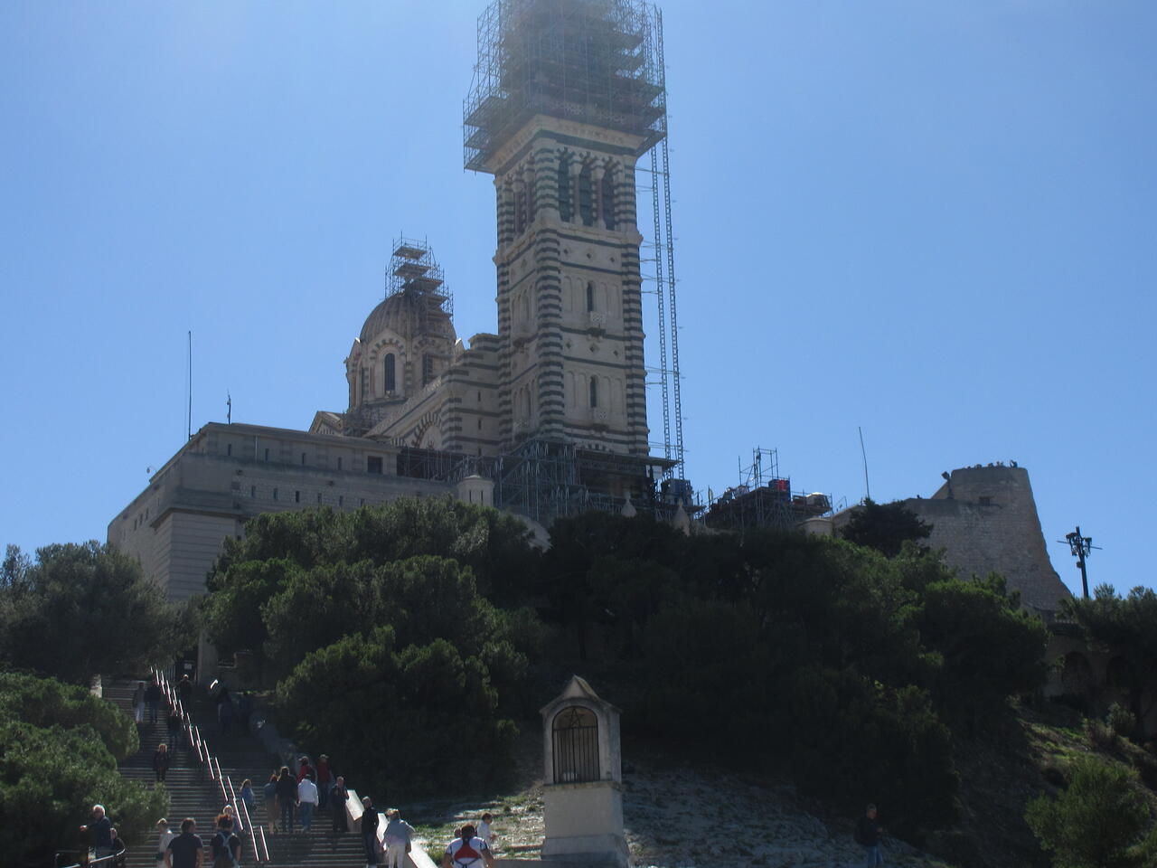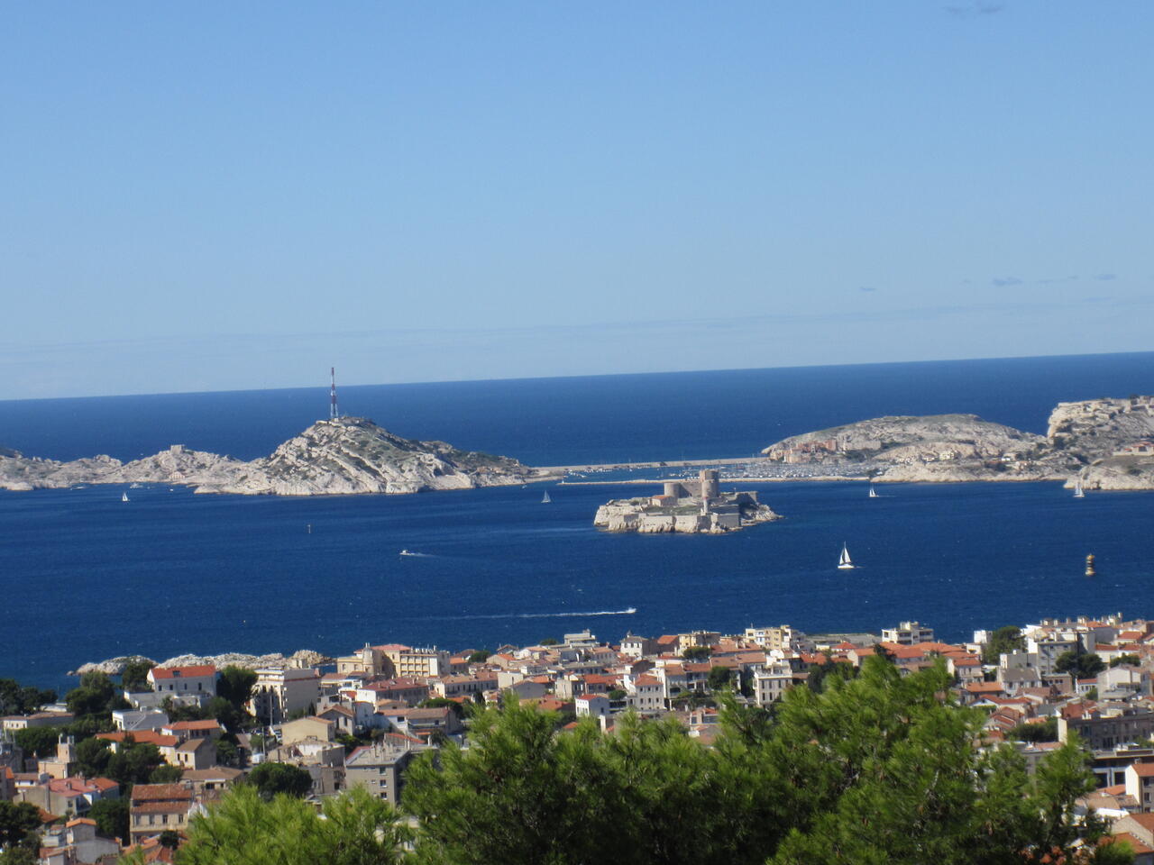 Das Wetter war traumhaft, und die Sicht von da oben natürlich dementsprechend gut. Man hat einen Weitblick über die Stadt Marseille. das Meer und die vorgelagerten Inseln.