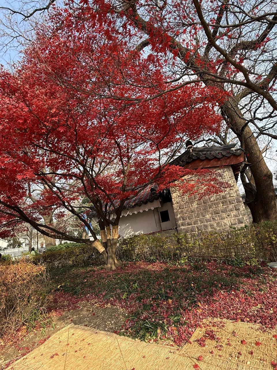 Danach fahren wir weiter zum Königspalast, „Gyeongbokgung Palace“, eine große Palastanlage umgeben von vielen, wunderschönen, roten Ahornbäumchen. Die sieht man übrigens in ganz Seoul. Sie vertreiben etwas das graue, eintönige und oft verspiegelte Betonbautenbild