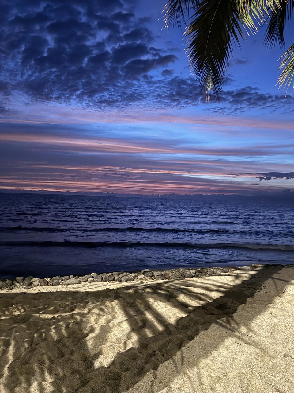 Wir essen in einem kleinen philippinischen, familienbetriebenen Restaurant zu Abend und genießen den spektakulären Sonnenuntergang.