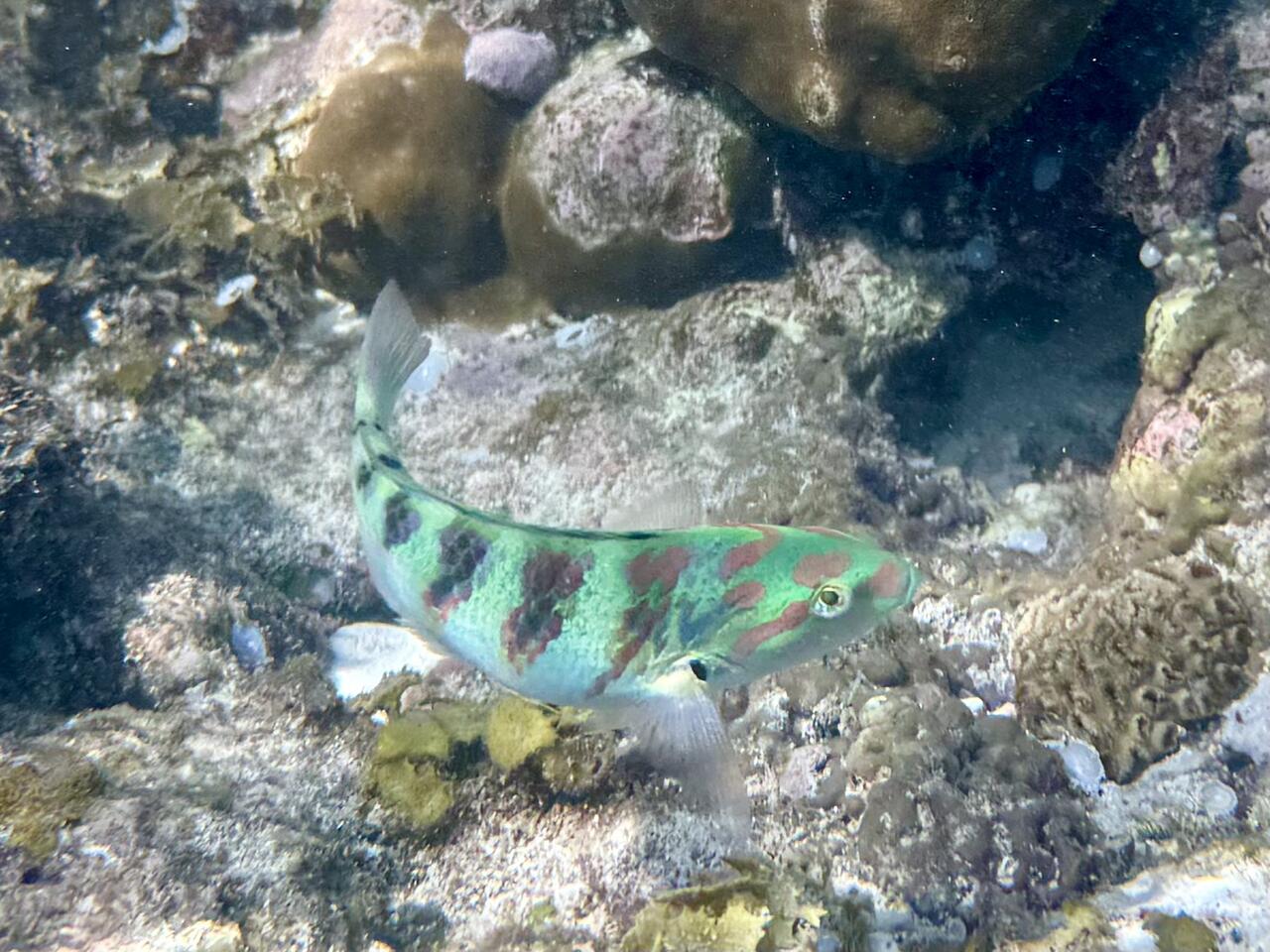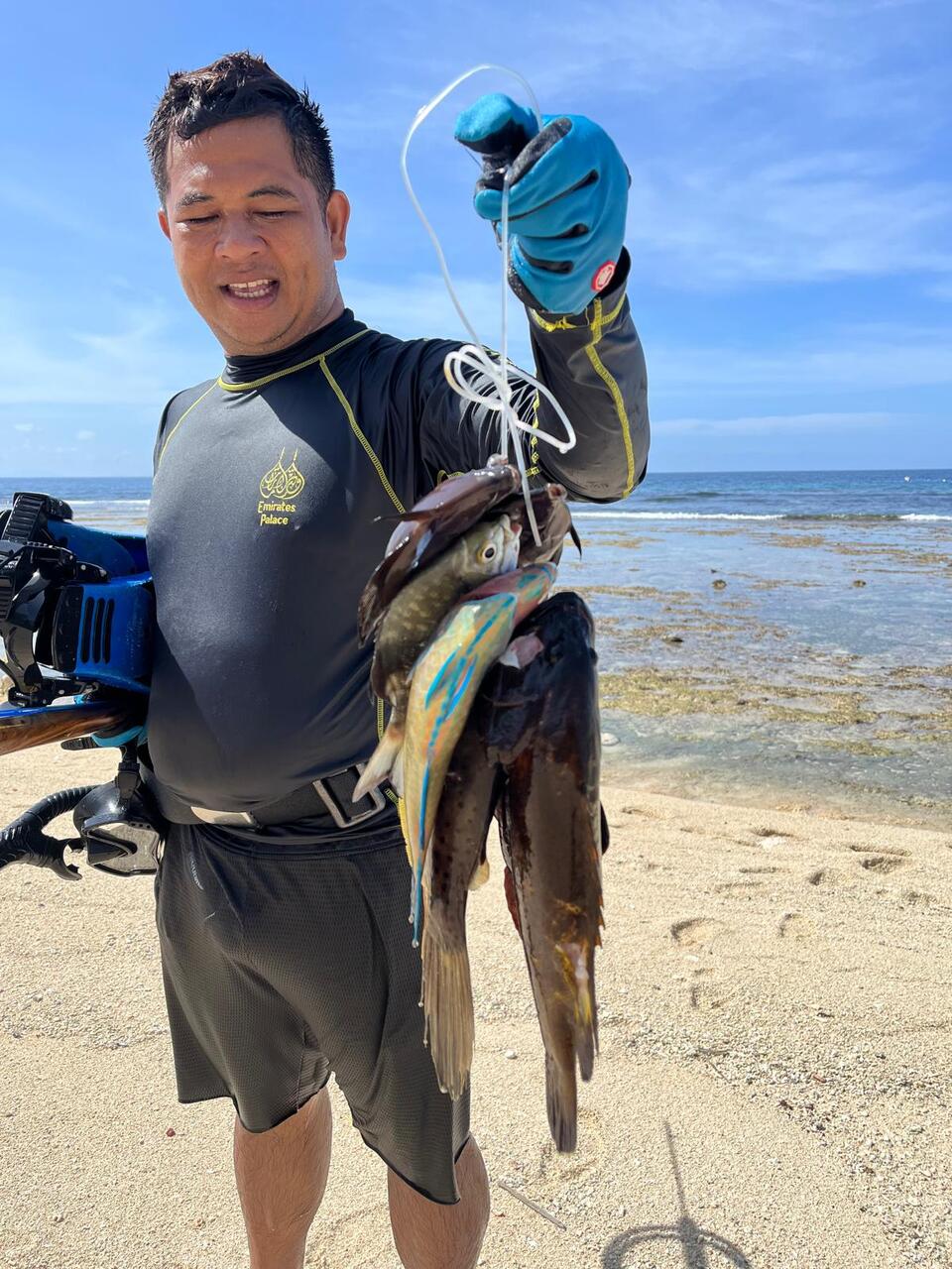 er war mit uns schnorcheln und hat ordentlich was mit seiner Harpune erledigt.
