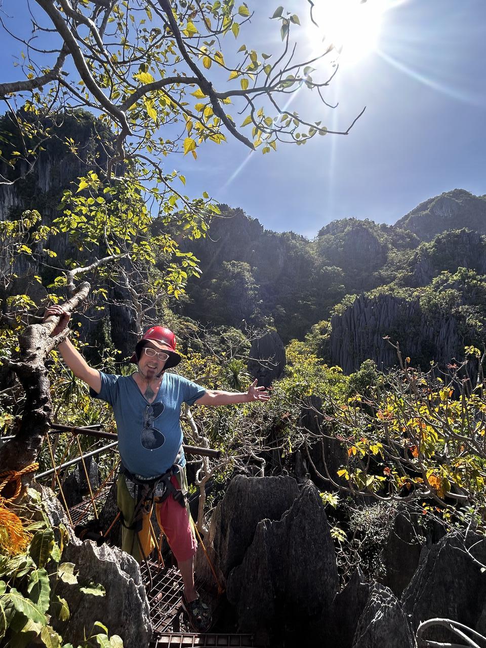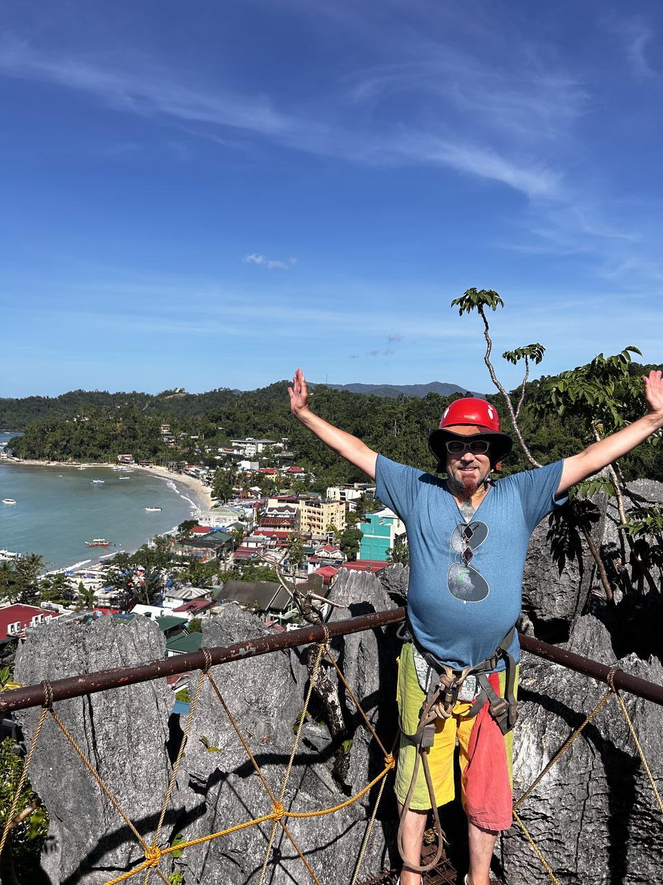 Dann hatte ich ja einen Tag "frei" , so konnte ich mich um meine Wäsche kümmern , meine Weiterfahrt nach Nacpan , hab noch bisschen was für mein Wohlbefinden getan , alles schick soweit , doch dann gab es ja noch eine schöne Aussichtsplattform , hier im Ort, man muss wissen , El Nido ist so ein bisschen wie in eine Felswand gehauen und da gibt es den Via Ferrata Canopy Walk, der hat es aber in sich , sag ich euch ! Ich hatte glaub ich schon mal erzählt , dass mir Fallschirm springen oder Zip line nix ausmachen, aber über so eine schwingende Brücke zu laufen oder Treppen hoch zu steigen, die nur mit einem Seil gesichert sind , ich hatte die Büxen aber gestrichen voll und ich hab erst dann verstanden , warum ein Guide mit muss ! Es hat sich aber trotzdem gelohnt !