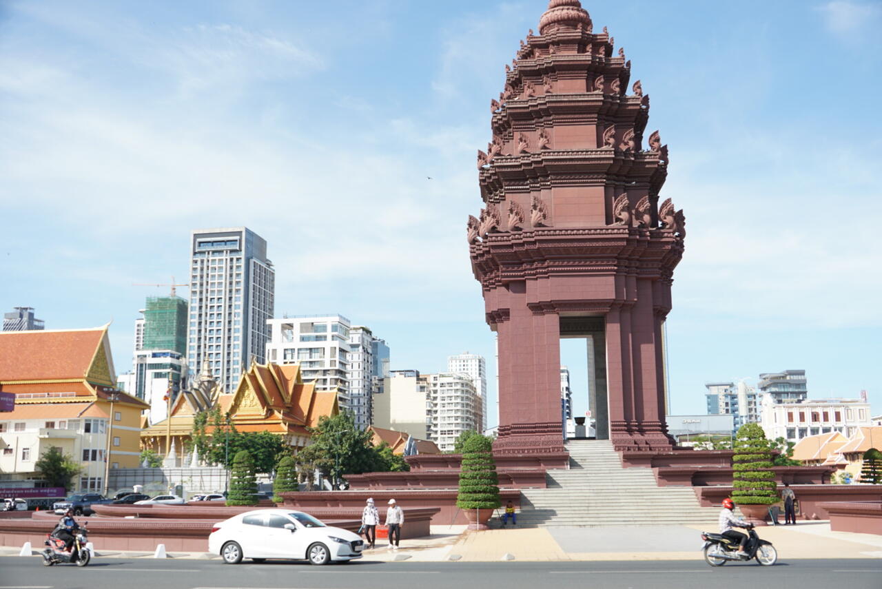 Das Unabhängigkeitsdenkmal wurde 1958 gebaut und ehrt die Kambodschaner die für die Befreiung von der französischen Unabhängigkeit gekämpft haben