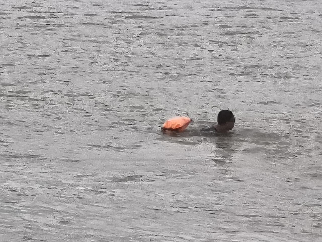 Immer wieder mal sieht man Schwimmer im Fluß und bei der immer noch starken Strömung ist das bestimmt super anstrengend