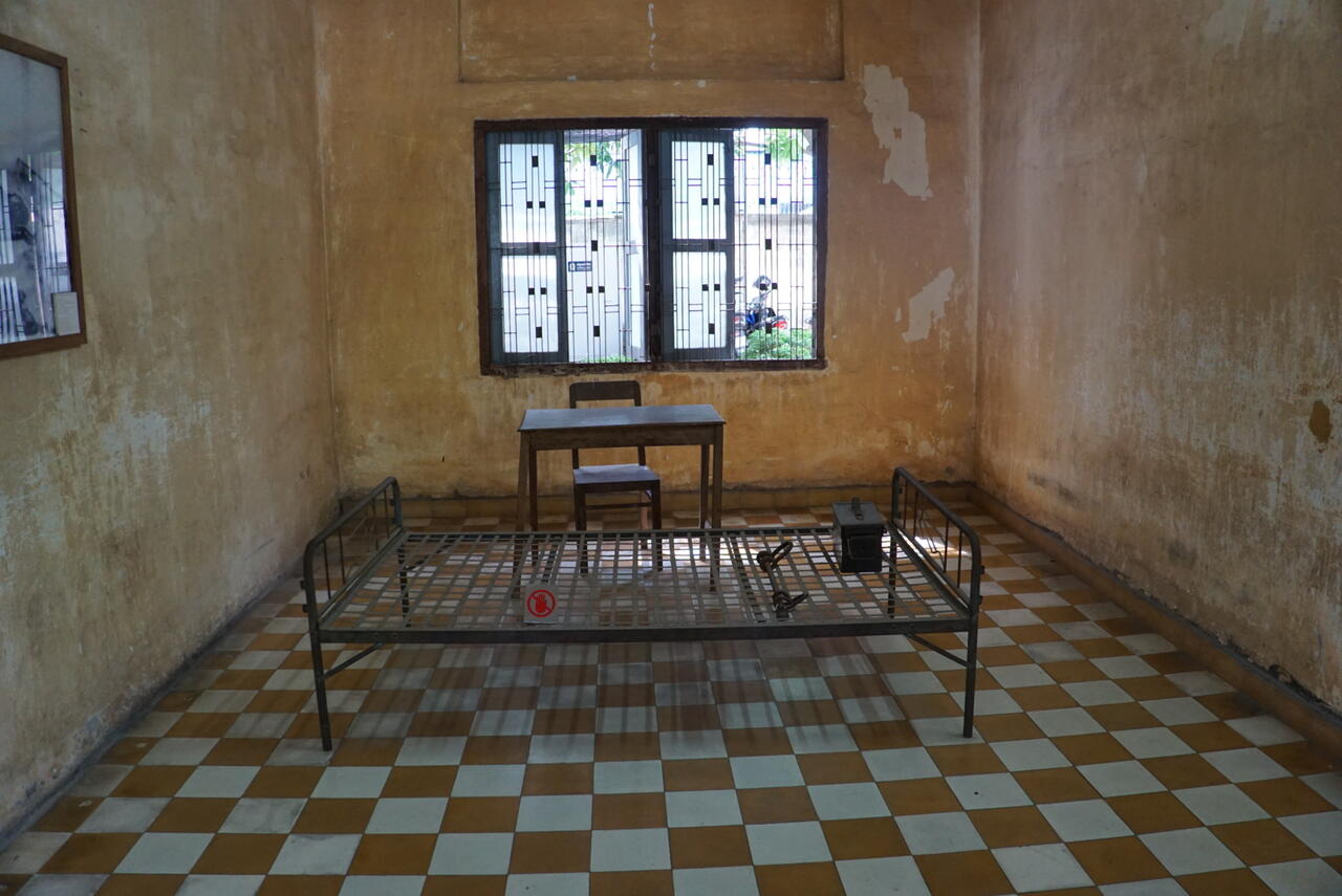 Einer der vielen Verhörzimmer indem die Gefangenen am Bett angekettet waren und gefoltert wurden bis sie alles zugaben was gewünscht war