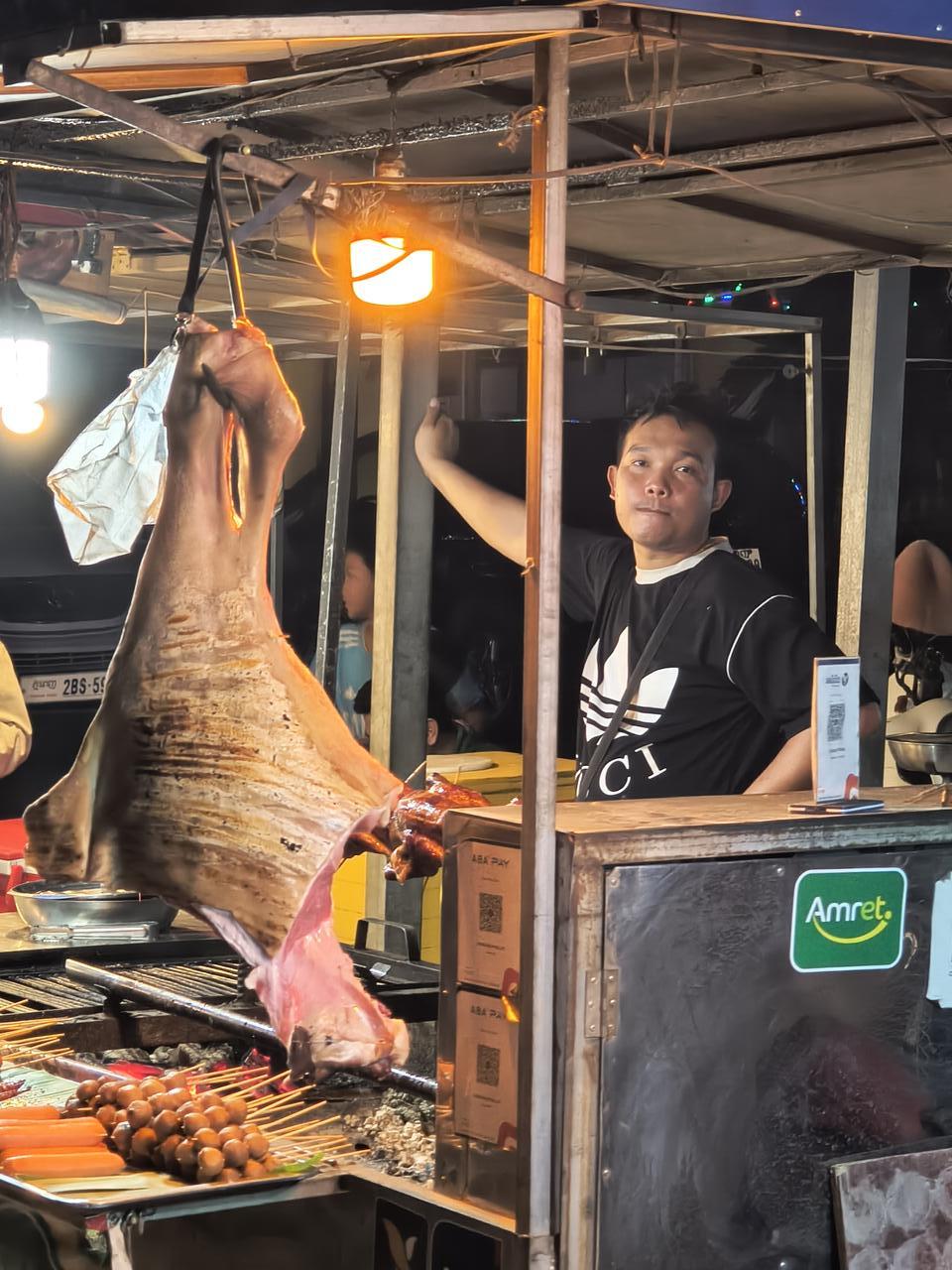 Die Promenade am Mekong ist schön ausgebaut und am Abend ist hier auch viel los, das tägliche öffentliche Tanzen zu fetziger Musik mit Vortänzer, Jogger, Streetfoodstände mit allem was das Tier hergibt, Familienpicknicks auf einer Decke am Boden