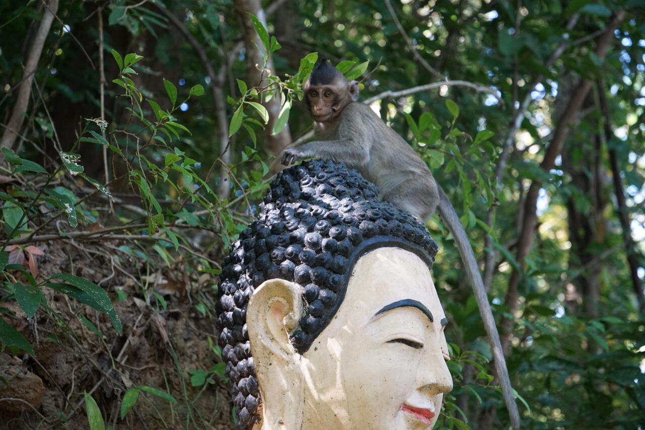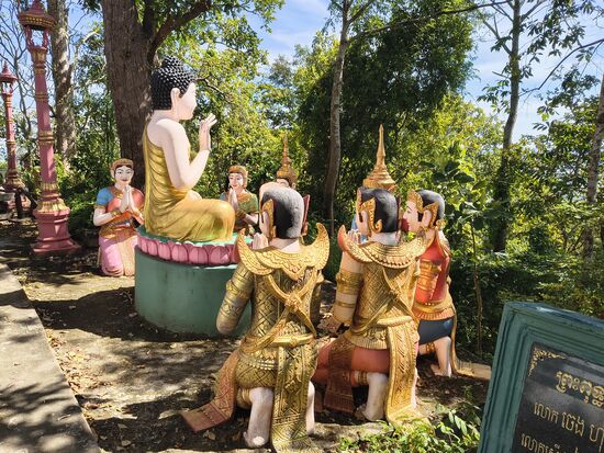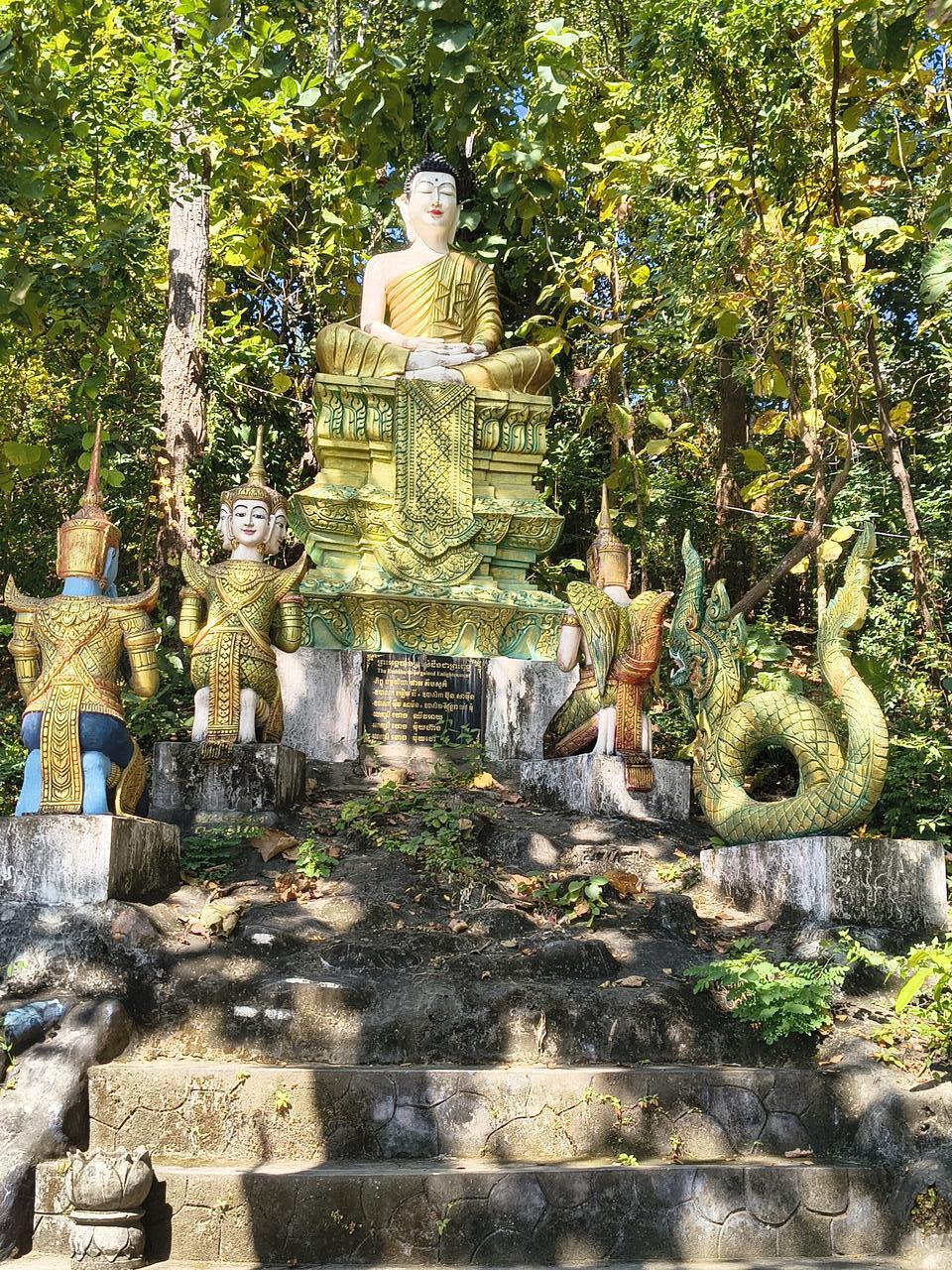 Phnom Sambok mit seinen 310 Stufen die mit Mönchsstatuen gesäumt sind ist ein ruhiger und etwas verträumter Ort