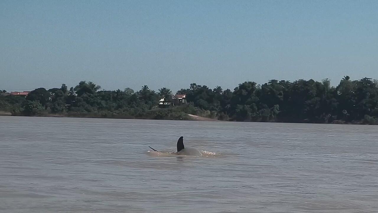 Irrawaddy Delphine, bei dem kleinen Dorf Kampi leben nach der letzten Zählung um die 110 Tiere und damit steigt die Population der vom aussterben bedrohten Delphine wieder leicht an. Sie haben eine runde Schnauze und springen nur sehr selten
