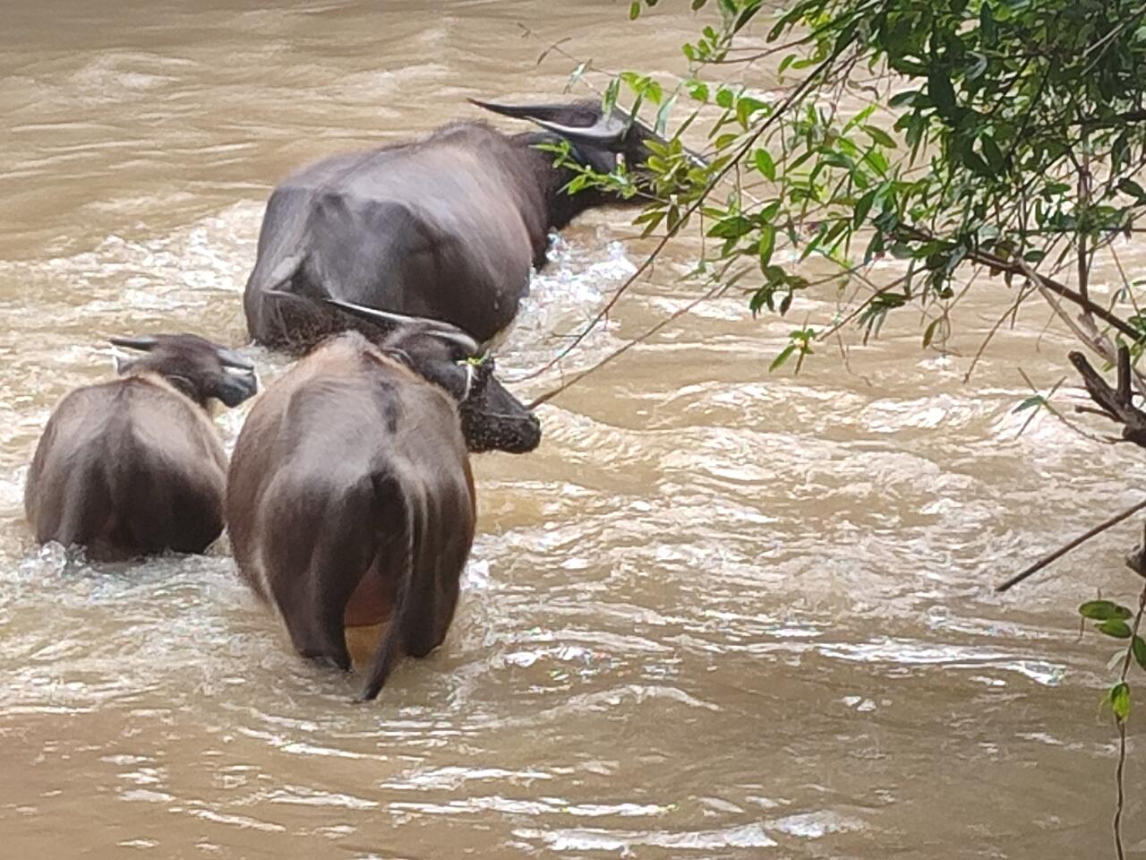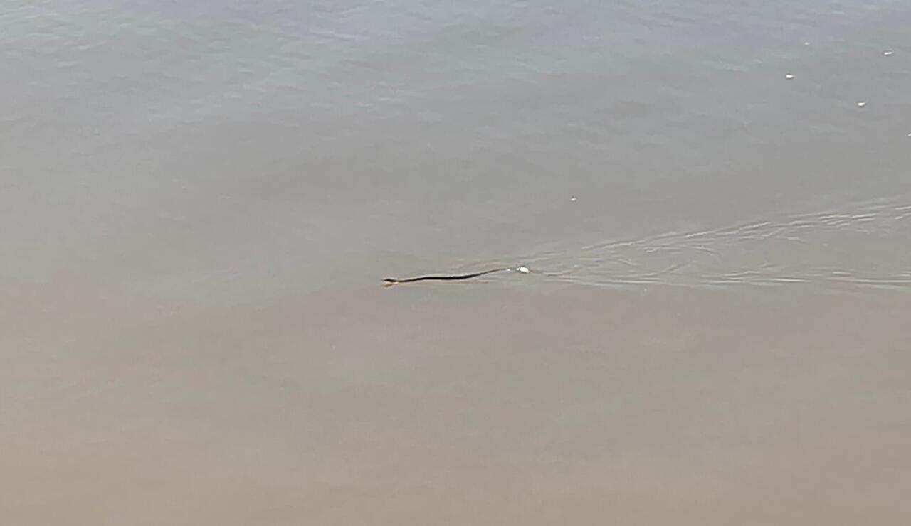 Eine Schlange schwimmt im Mekong vorbei als wir gerade beim Frühstück waren, vielleicht sucht sie auch was leckeres. An Land haben wir sie dann nicht mehr gesehen