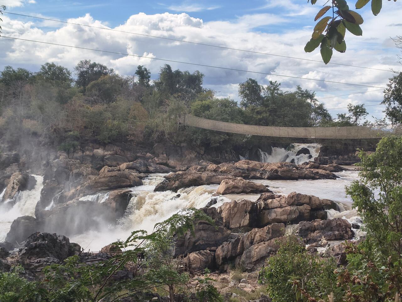 Hinter der kambodschanischen Grenze erreicht der Mekong seine größte Breite und dadurch ist hier ein ganz eigenes Flussarchipel entstanden. Im Zuge der Trockenzeit tauchen immer mehr kleine Inseln aus dem Fluß auf und werden erst mit der Regenzeit wieder verschwinden. Die Hauptinseln sind Don Det und Don Khon und beide sind mit einer Brücke aus der französischen Kolonialzeit verbunden. Es ist ruhig und entspannt aber man sollte auch etwas aufpassen. Mit Happy gekennzeichnete Gerichte oder Getränke sind mit Marihuana aufgepeppt und man sieht immer wieder Häuser die "we sell mushshrooms" am Zaun stehen haben und damit sind keine Champignions gemeint. Wieviel Psilocybin die Pilze enthalten kann niemand sagen und das macht es gefährlich.