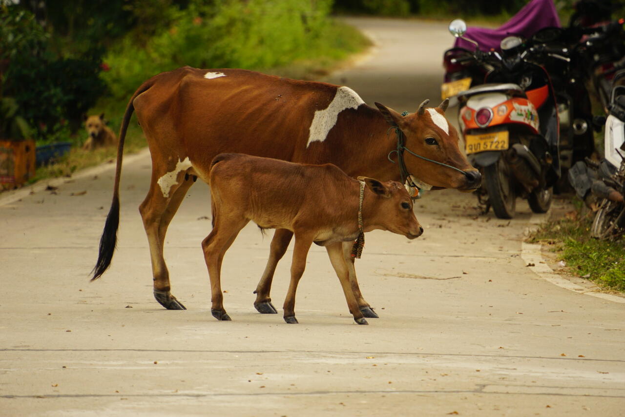 Tiere sind hier außerhalb der Städte meist alleine und auch auf den Straßen unterwegs auf Futtersuche, abends trotten sie dann auch wieder nachhause
