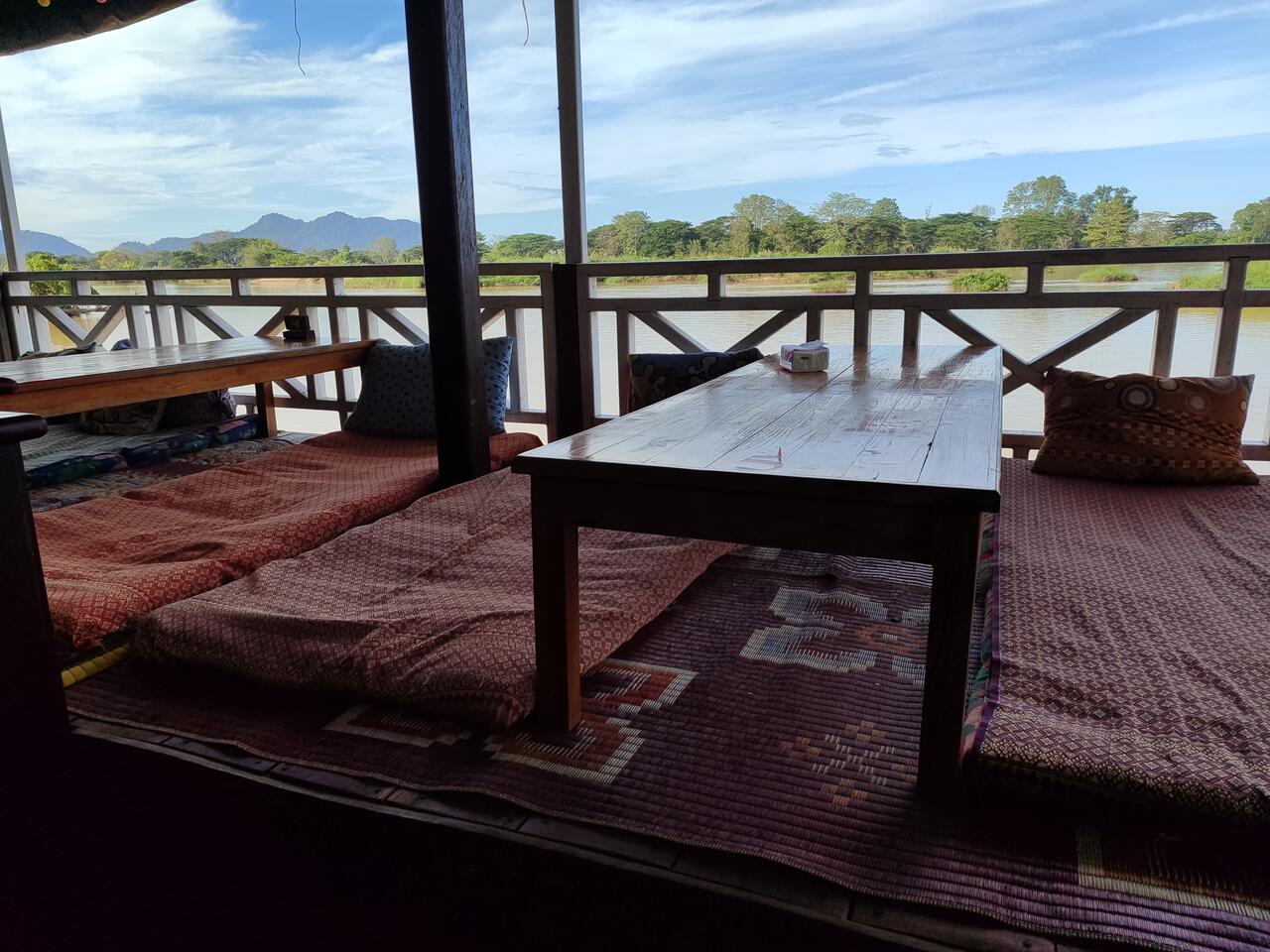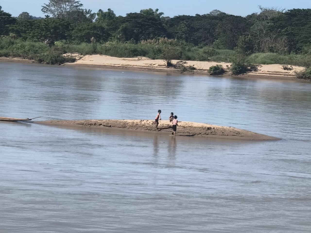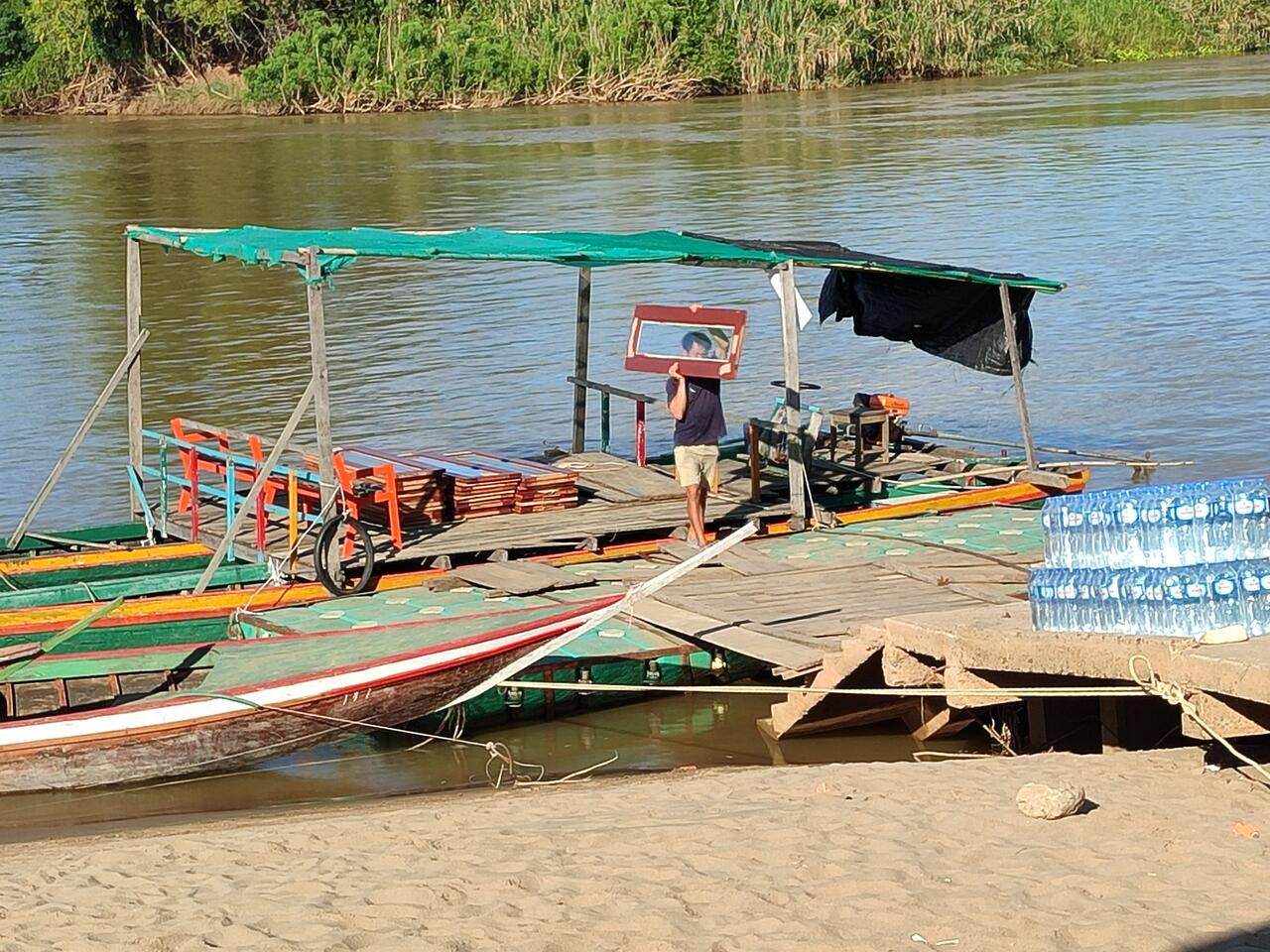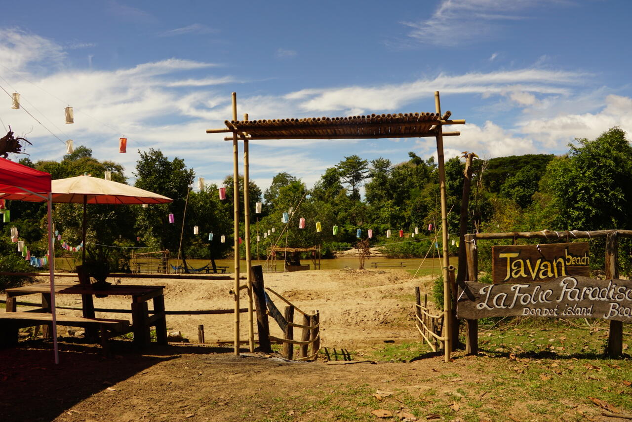Ein kleiner Sandstrand am Mekong mit 'Strandbar'. Das Wasser schaut durch die vielen Sedimente aber immer trübe und schlammig aus, uns wurde aber auch erzählt dass der Mekong manchmal ganz klar ist