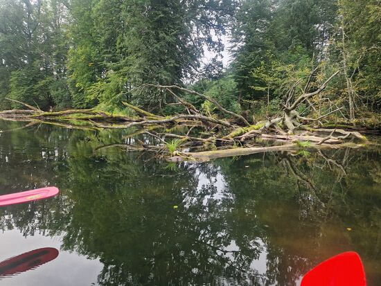 Ein Höhepunkt ist für uns anderntags die Paddeltour auf der Krutynia von Krutyn bis nach Ukta. Auf halber Strecke finden wir eine schöne Einkehr in Rosocha. Für diese Tour hatten wir uns ein Paddelboot ausgeliehen, weil die Krutynia teils sehr zugewachsen ist, da ist eine SUP-Finne sehr hinderlich. Außerdem organisiert der Verleiher den Rücktransport vom flussabwärts gelegenen Ziel.