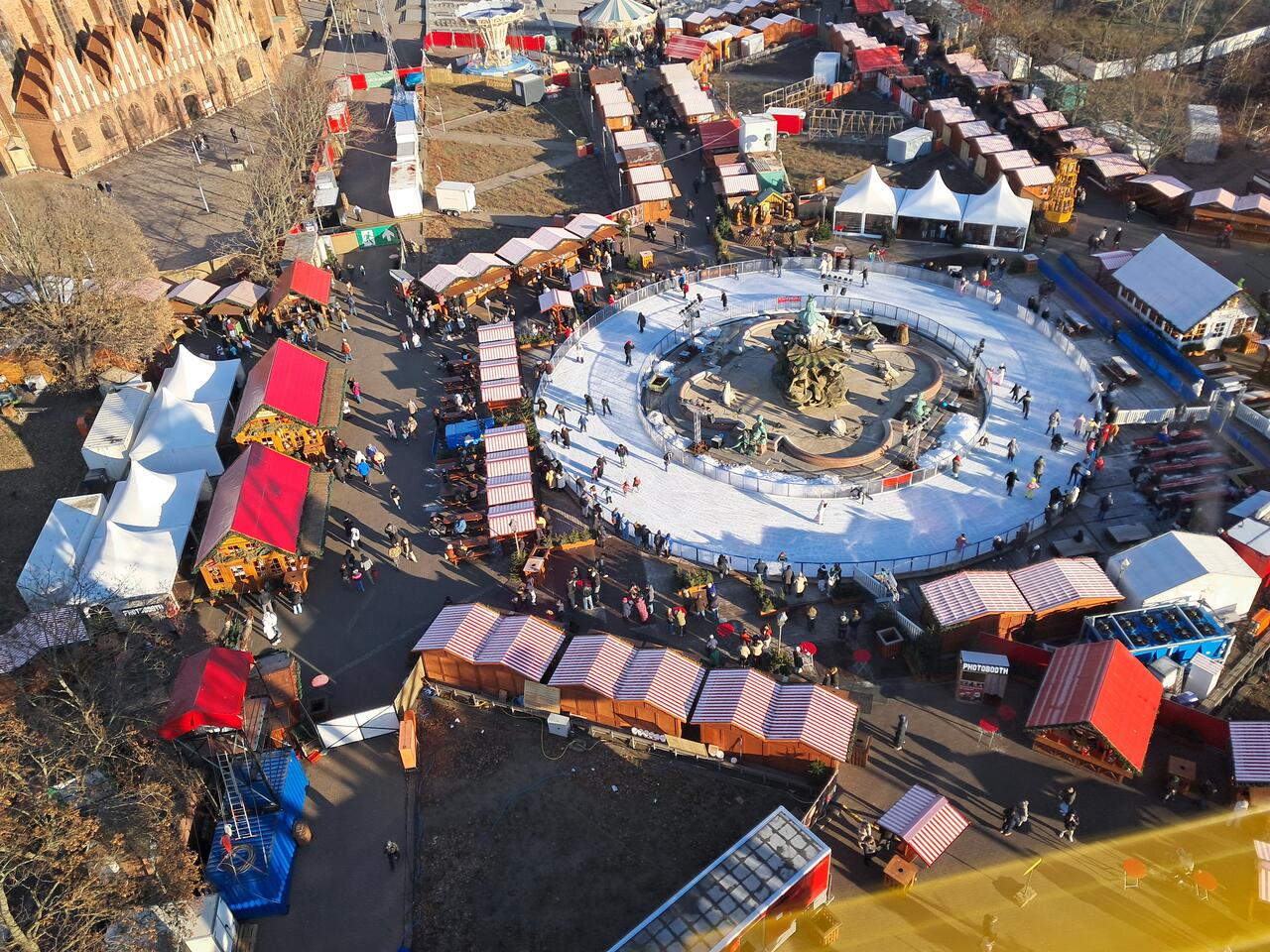 Rund um den Neptunbrunnen lädt eine Eisbahn zum Schlittschuhlaufen ein. Auf 600 Quadratmetern kann man hier übers Eis gleiten und die weihnachtliche Stimmung geniessen. Mit einem Glühwein zum Aufwärmen schaute ich eine Weile zu - Eisflitzern und Anfängern - und manchmal sah man sogar eine Art Paarlaufen.
