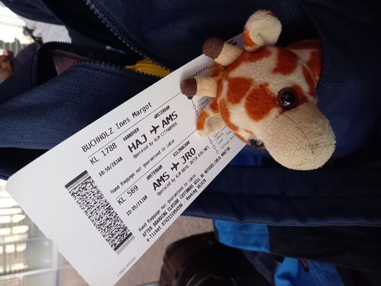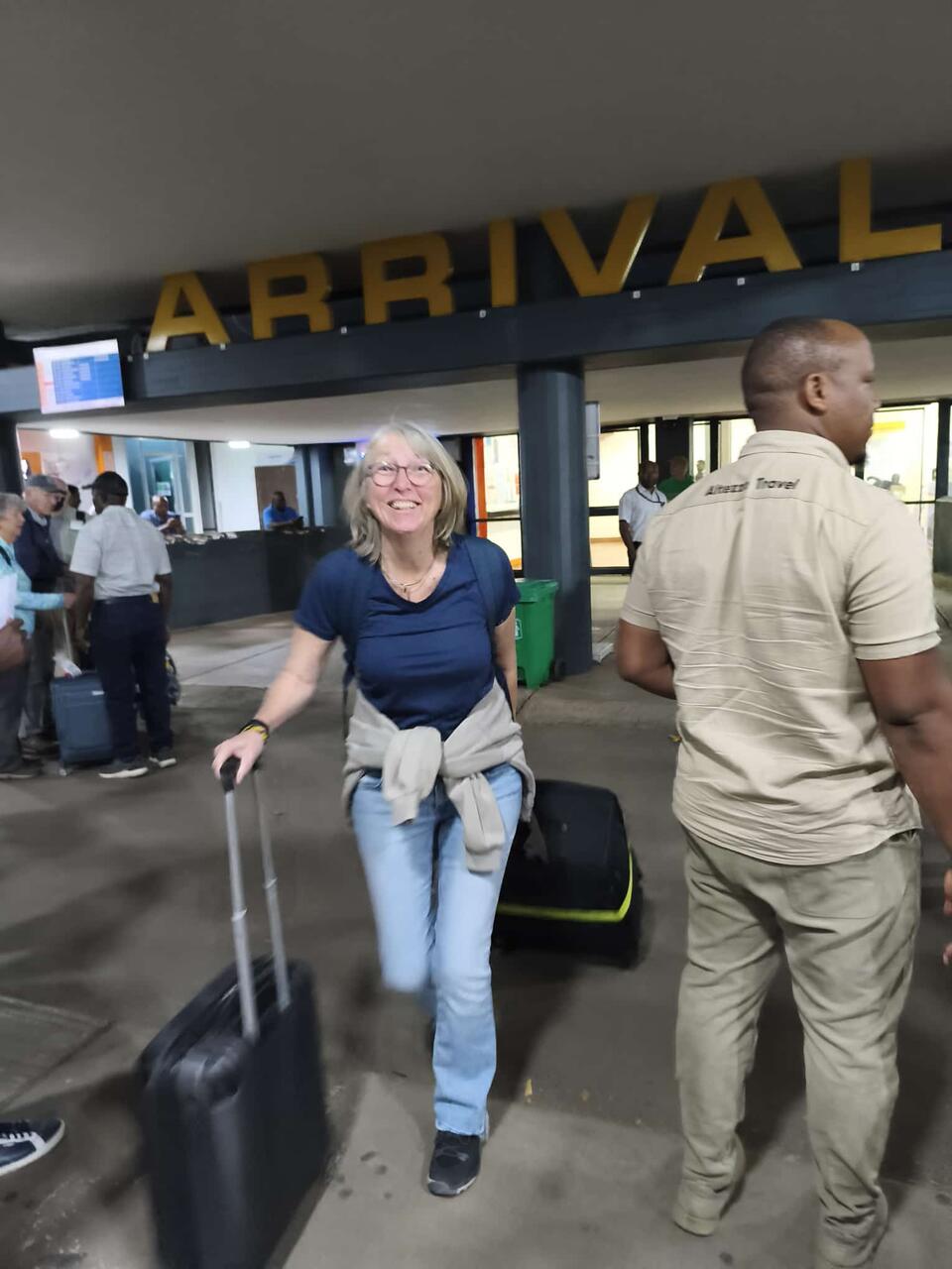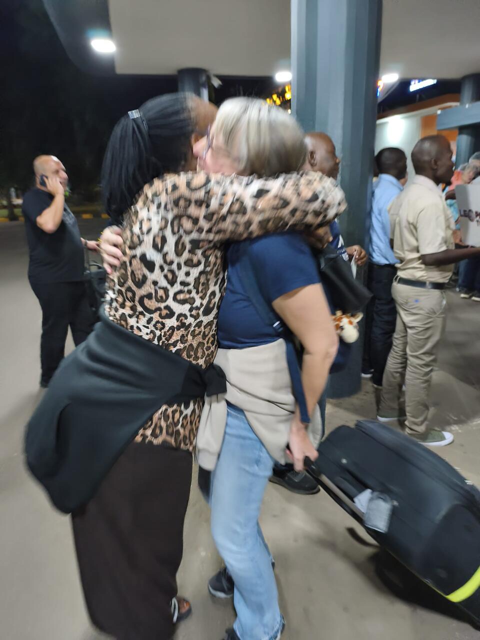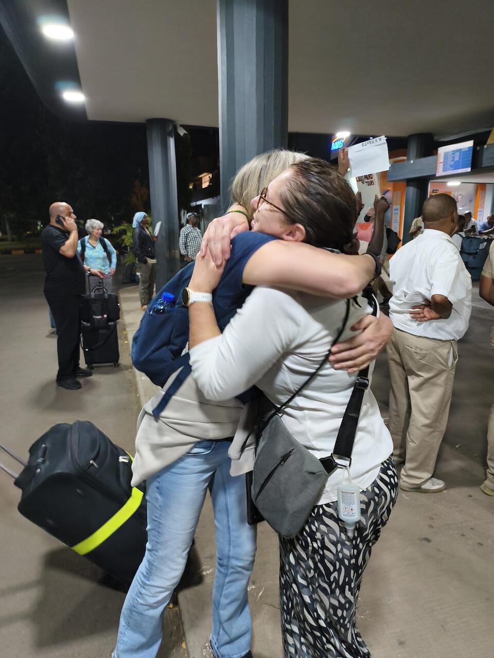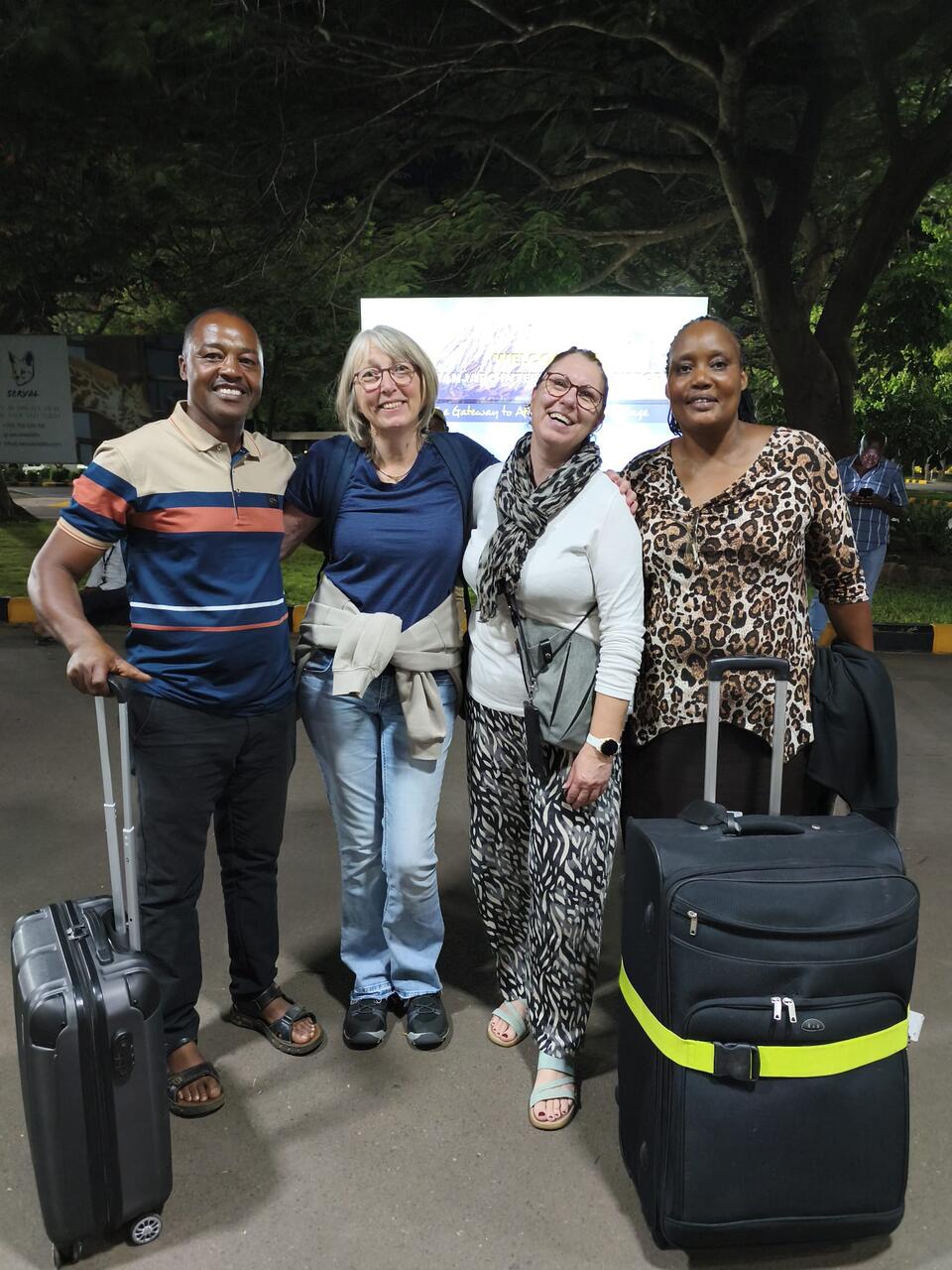 Unsere Freiwilligen Manuela und Rita sind mit zum Flughafen gekommen. Das war ein rundum gelungener Empfang!