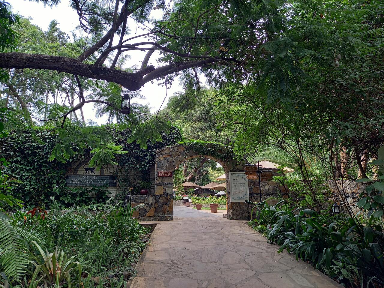 Diese Lodge gibt es schon seit 1959. Ein guter Ort zum Entspannen und ein gutes Essen zu genießen. Unter den riesigen Bäumen lässt sich die Hitze gut aushalten.