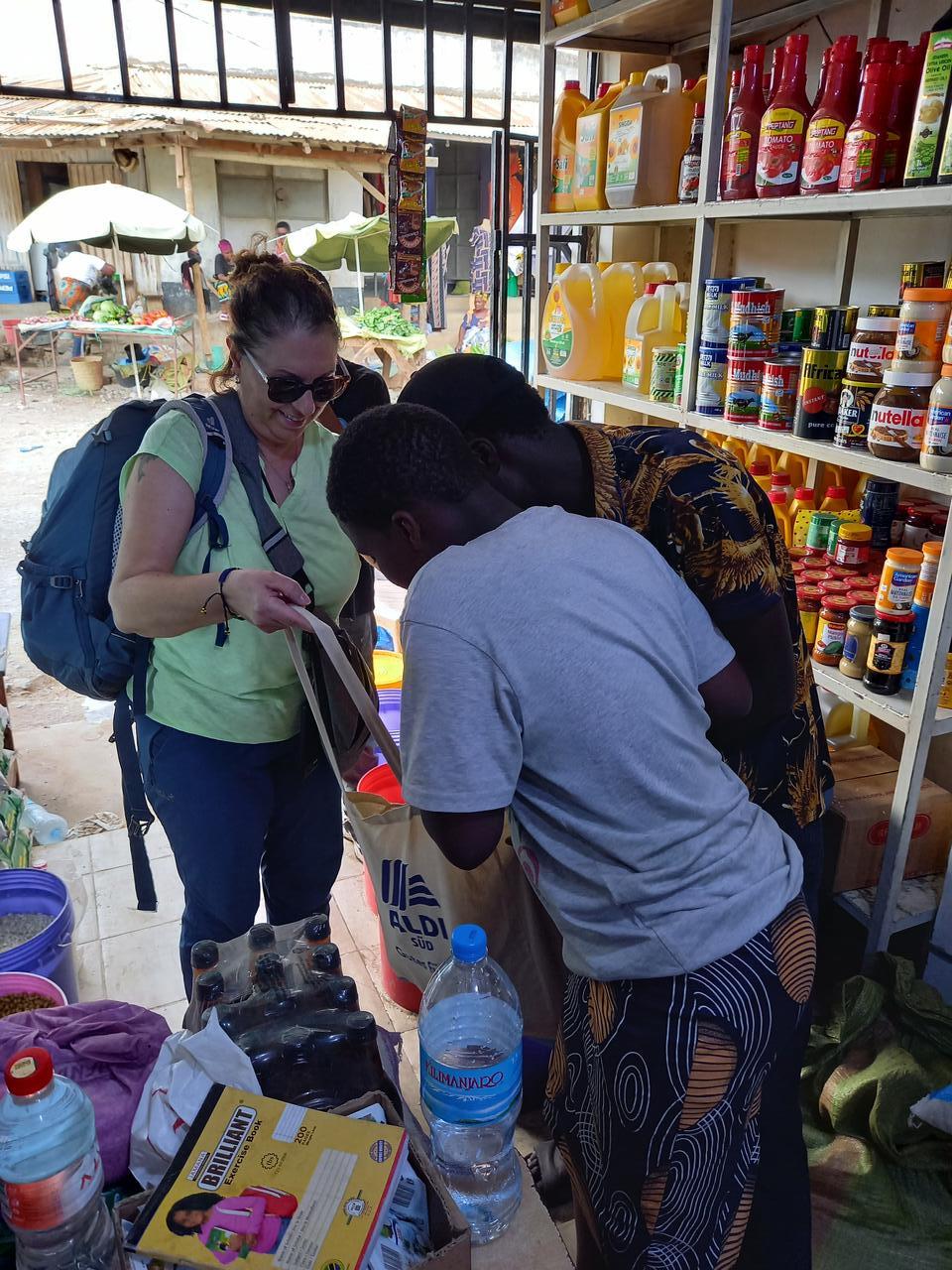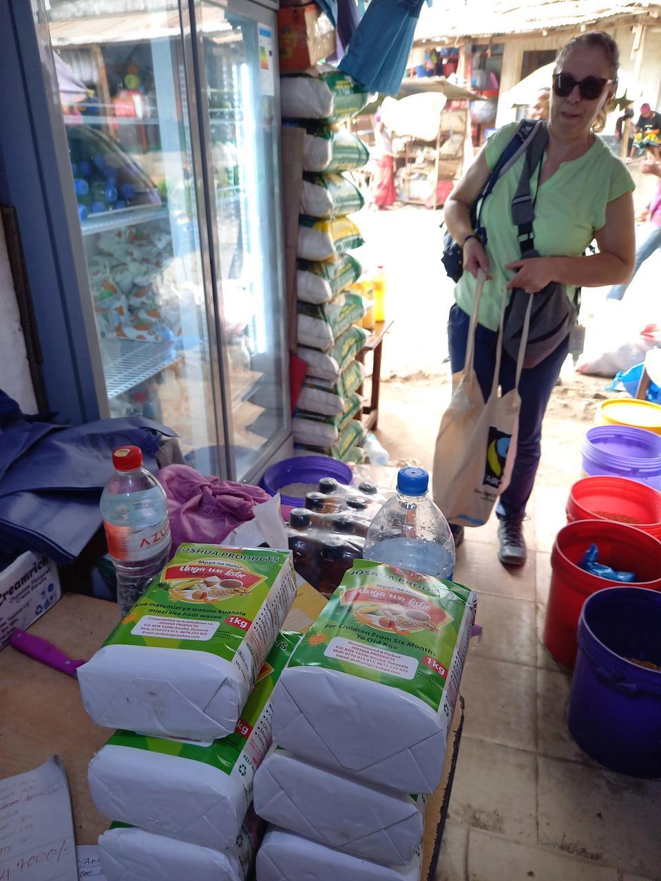 Die Luft ist drückend und es zieht ein Gewitter auf. Somit machen wir uns auf den Heimweg mit Zwischenstopp auf dem Markt von Usa River. Ich will noch 10kg Porridge besorgen. Das werde ich am Montag mit in das Day Care von Madame Tina nehmen.