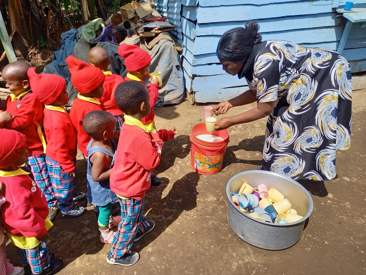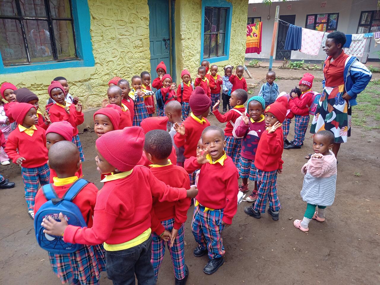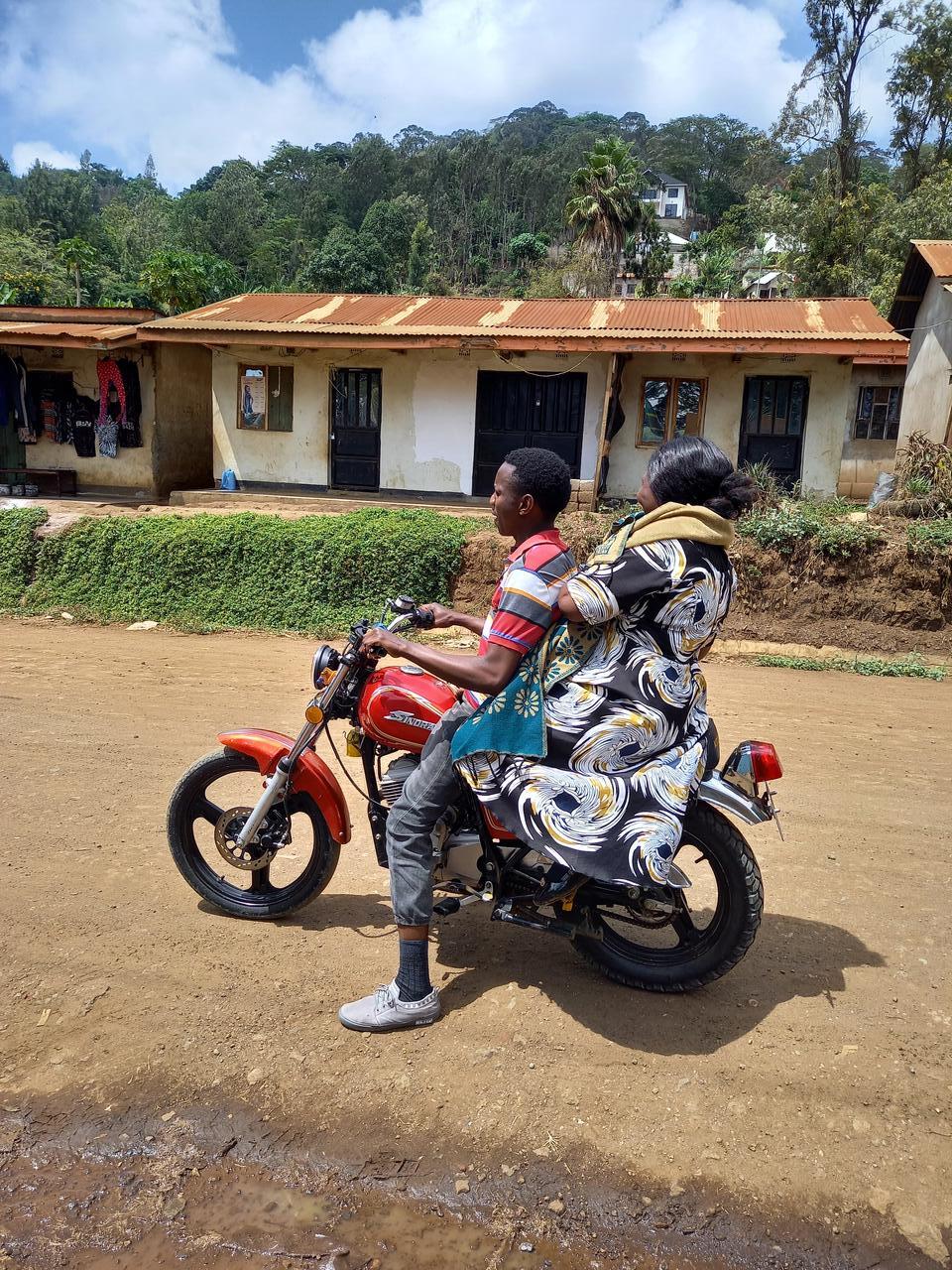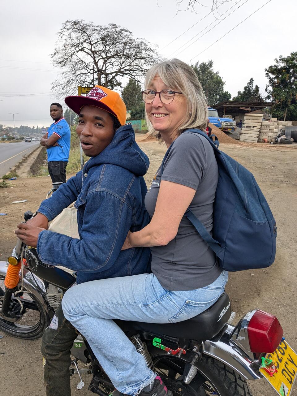 Am frühen Morgen brechen wir auf nach Shangarei. Wir haben Glück, Vumilia nimmt uns auf seinem Weg zur Arbeit mit dem Auto mit. Das erspart uns die Fahrt mit dem Dalla Dalla. Wir sind bepackt mit 10kg Porridge und 50 Schulheften. Kaum sind wir in Shangarei angekommen wartet bereits eine junge Frau auf uns, die bei Tina unterstützt. Schnell werden drei Motorräder organisiert, denn wir müssen von der Hauptstraße noch ein Stück bergauf um zu Tina's Kindertagesstätten zu gelangen.