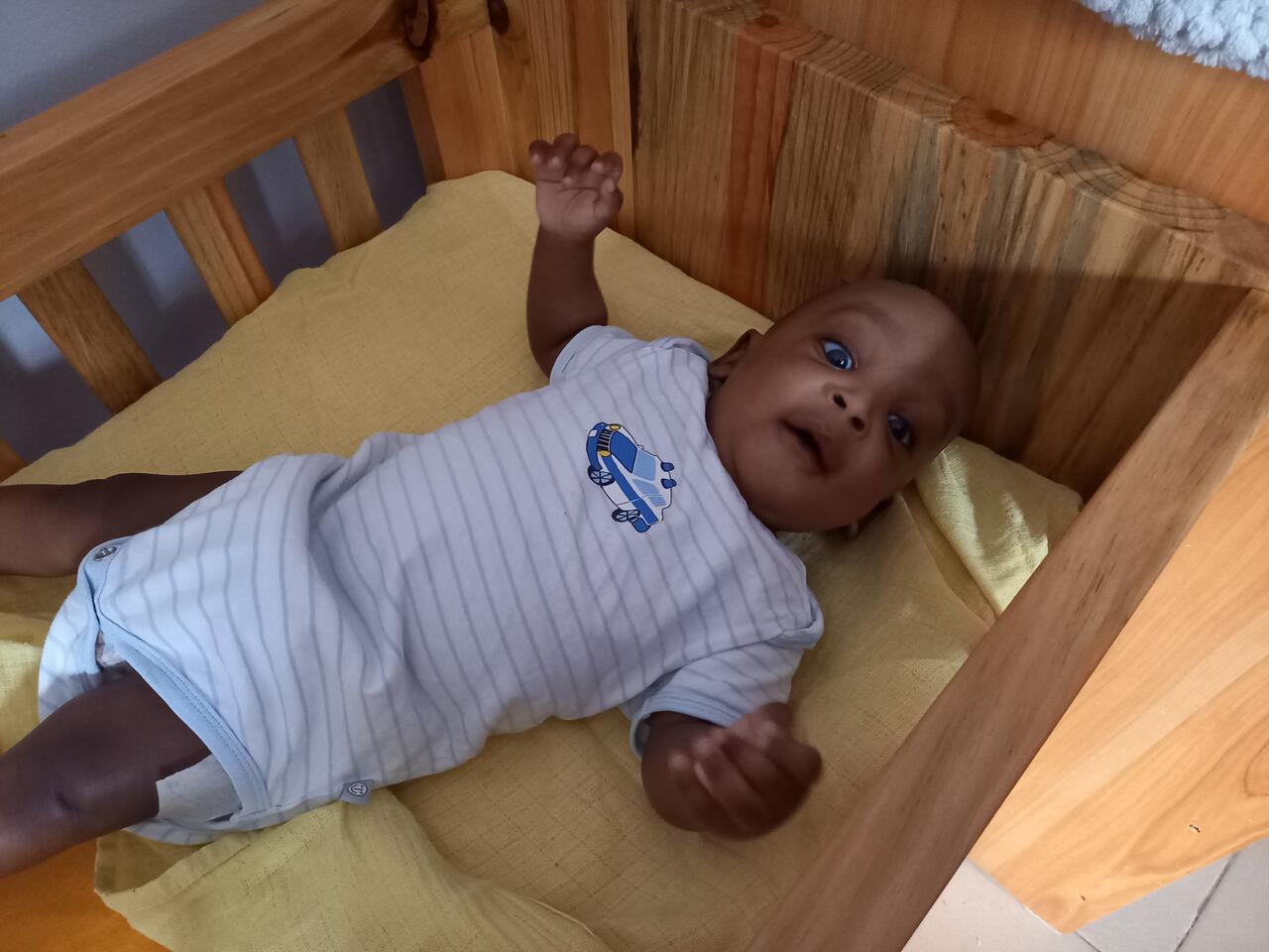 Dann kommt der Tischler meines Vertrauens auf den Hof gefahren. Er liefert zwei Baby Betten an. Nun haben wir genug eigene Betten und können die vom Sozialamt geliehenen zurück geben.