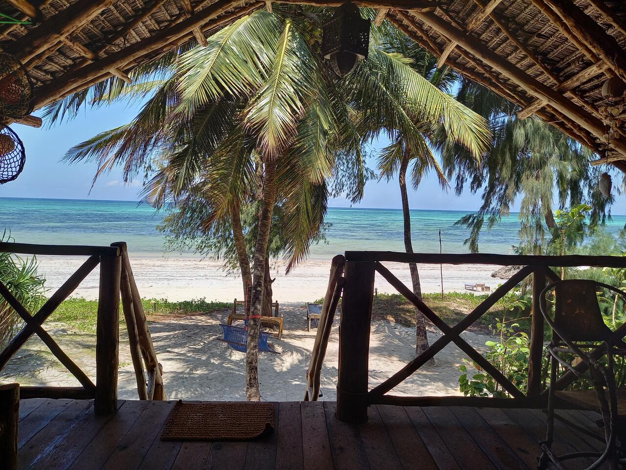 Die Bungalow Anlage liegt direkt am Strand von Bwejuu. Sie wird von Claudia, einer Frau aus Berlin geleitet. Wir sind bereits zum zweiten mal hier. Dieser Ort ist einer der letzten dieser Art auf Sansibar. Leider entstehen immer mehr riesige Bettenburgen. Beim Bau wird auf die Natur keine Rücksicht genommen.