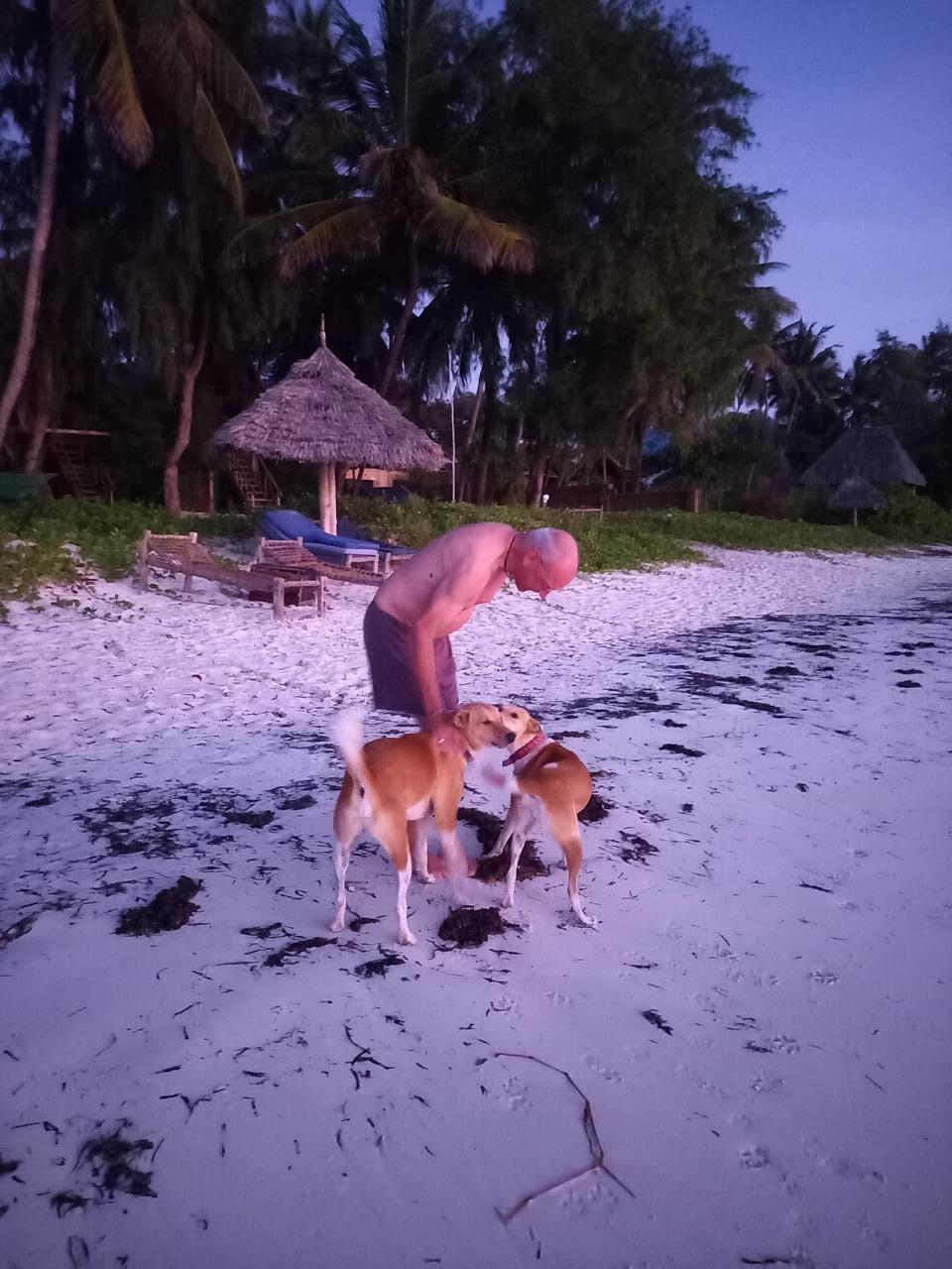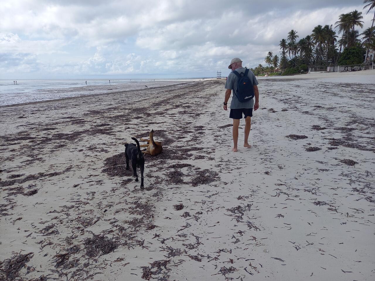 Morgens früh 6Uhr am Strand. Die Hunde passen auf, das kein Fremder auf das Gelände kommt.
