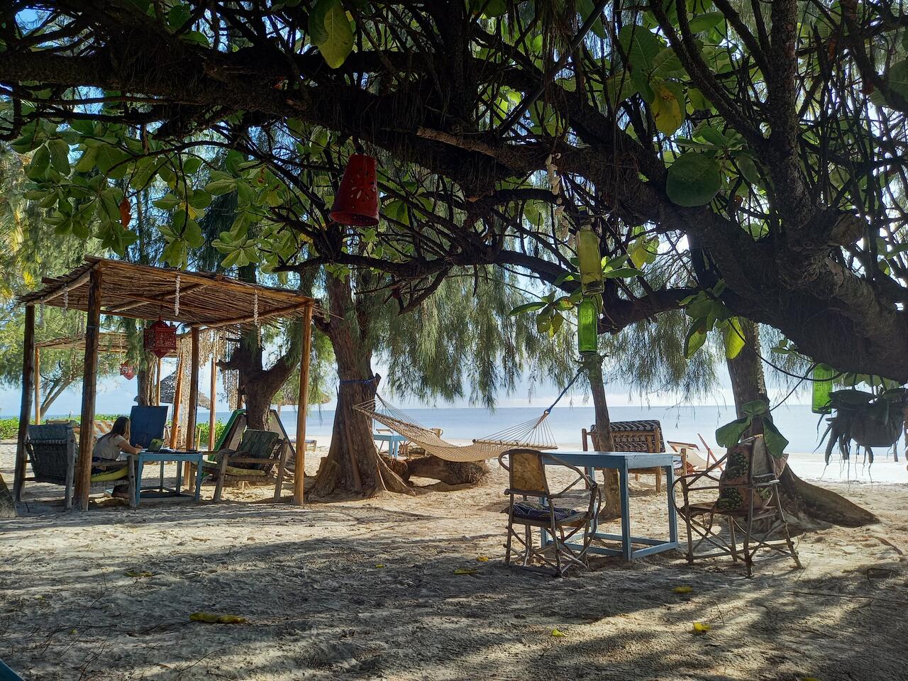 Frühstück im Schatten der Bäume oder auch in der Sonne, beides ist möglich. Es gibt genügend Sitzplätze, Hängematten und Liegen. Da findet jeder seine Lieblingsplätze.