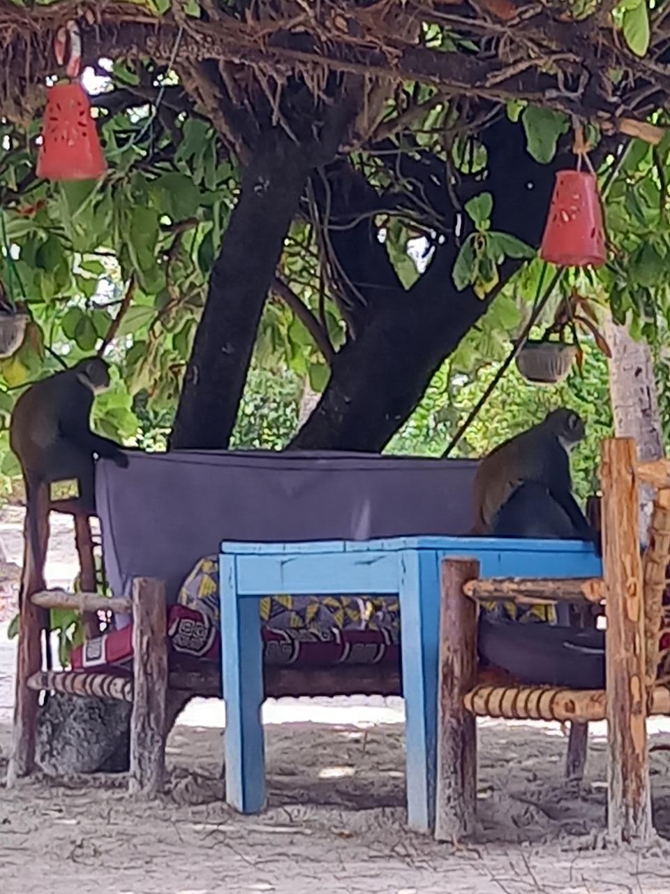Die Meerkatzen halten immer Ausschau nach etwas essbaren oder stehlen durchaus auch mal ein Handy.