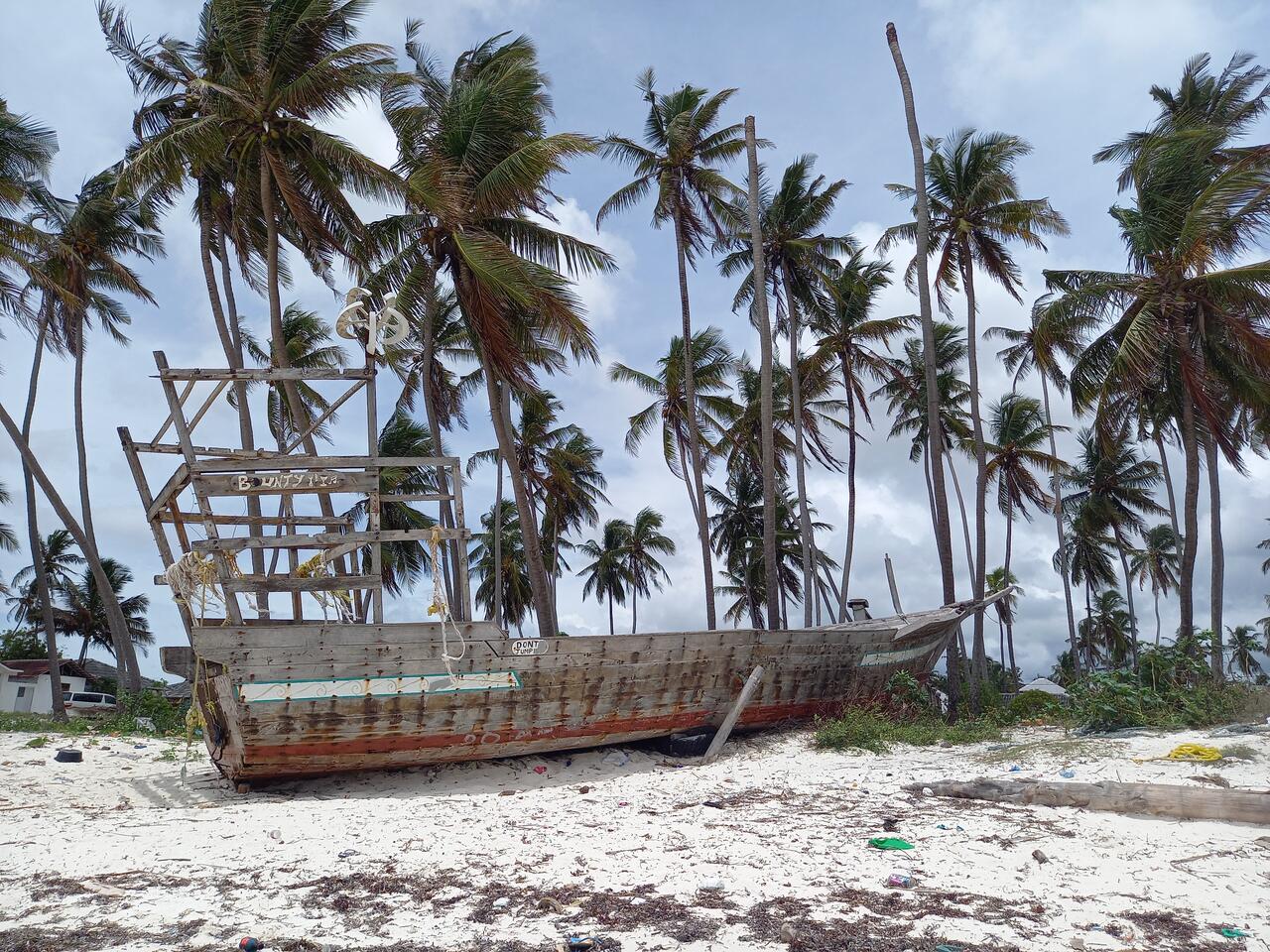 Hinter diesem Wrack liegt der Ort Bwejuu.