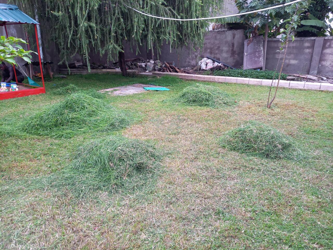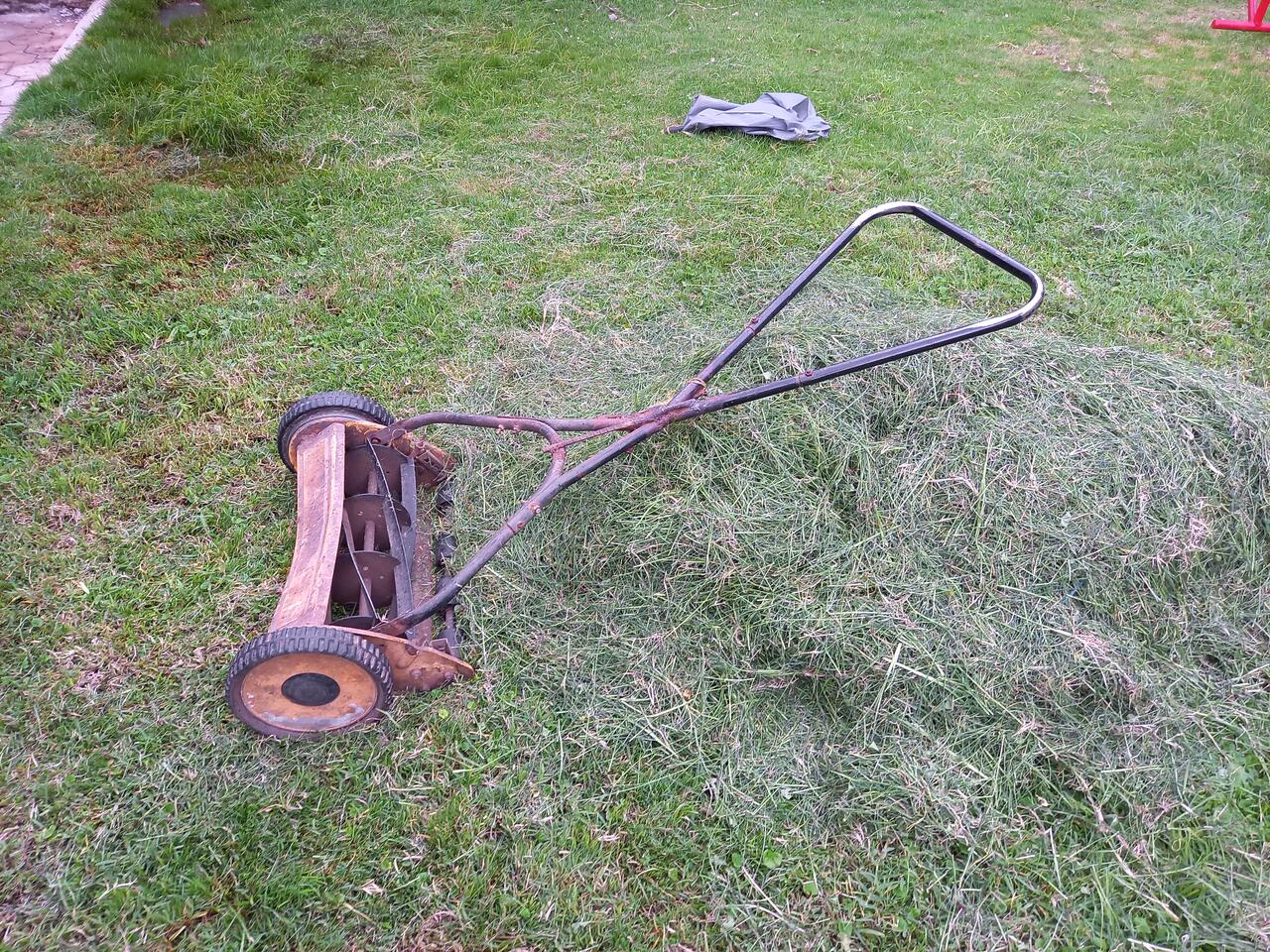 Ferner wurde der Rasen gemäht. Könnt ihr euch noch an diese Handrasenmäher erinnern? Außerdem kamen Handscheren zum Einsatz. Das war richtig viel Arbeit. Zwei junge Männer waren den halben Tag damit beschäftigt.