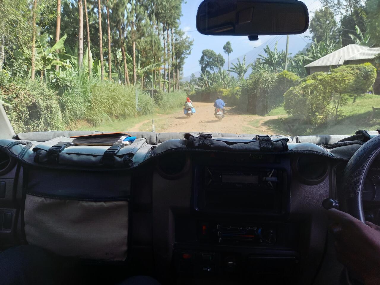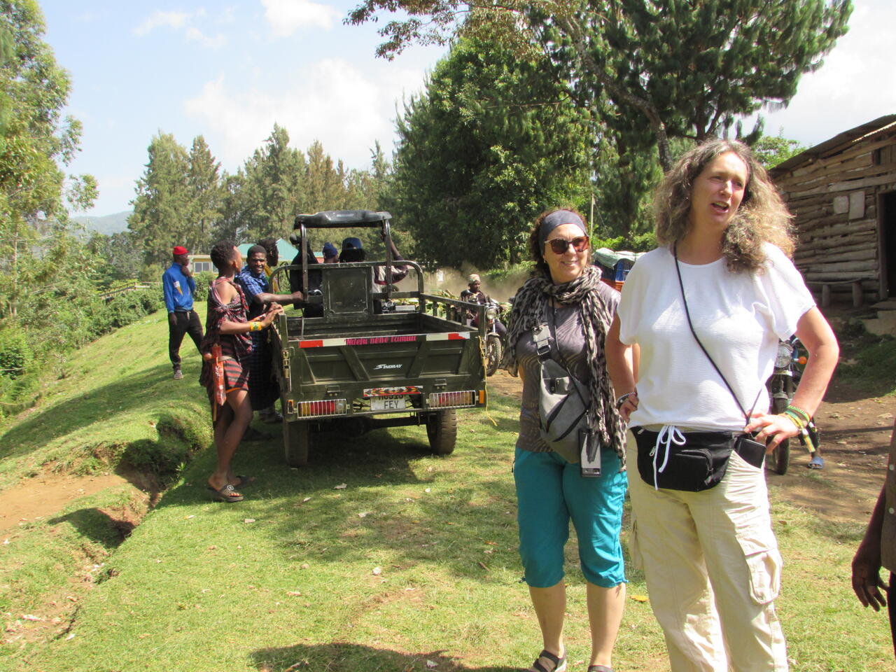 Kaum hat man die Hauptverbindungstraße zwischen Moshi und Arusha verlassen, ist man auf Schotterpisten mit unzähligen Schlaglöchern unterwegs. Hier sehen wir Frauen, die das Feuerholz nach Hause tragen. Mit jedem Fahrzeug das an ihnen vorüber fährt, werden sie von oben bis unter eingestaubt. Der Staub ist allgegenwärtig und kriecht durch jede Ritze, auch zu uns ins Fahrzeug.