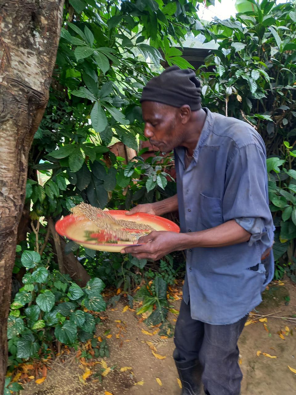 Dieses ist die älteste Kaffee Pflanze der Farm. Sie ist ca. 150Jahre alt. Im Schatten der Pflanze werden neue Stecklinge gezogen.