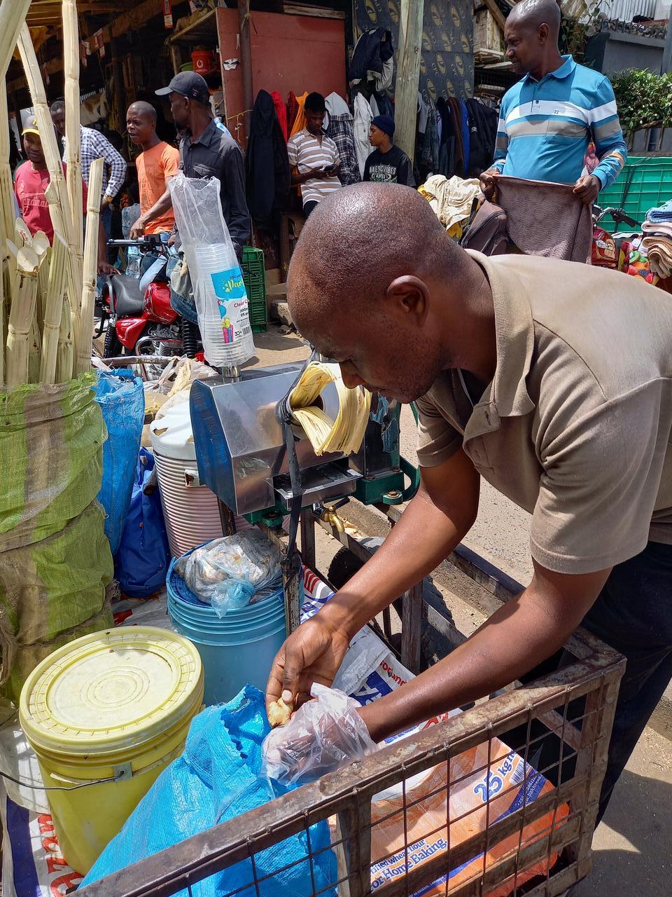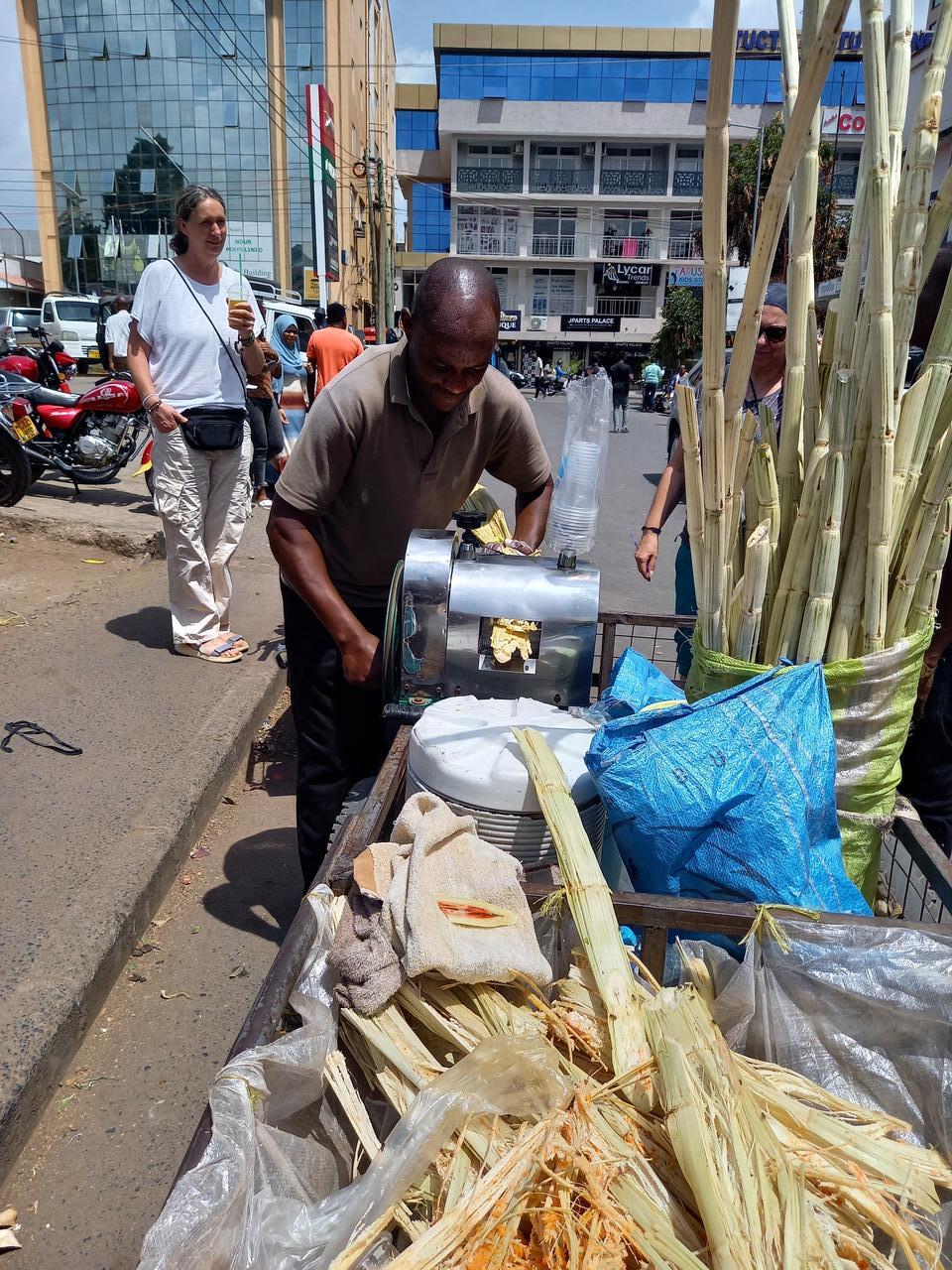 Vor dem Eingang fällt uns diese Verkäufer auf. Er bietet Zuckerrohr Saft mit Ingwer und Lemon an. Ich war zunächst skeptisch, doch er war super lecker!