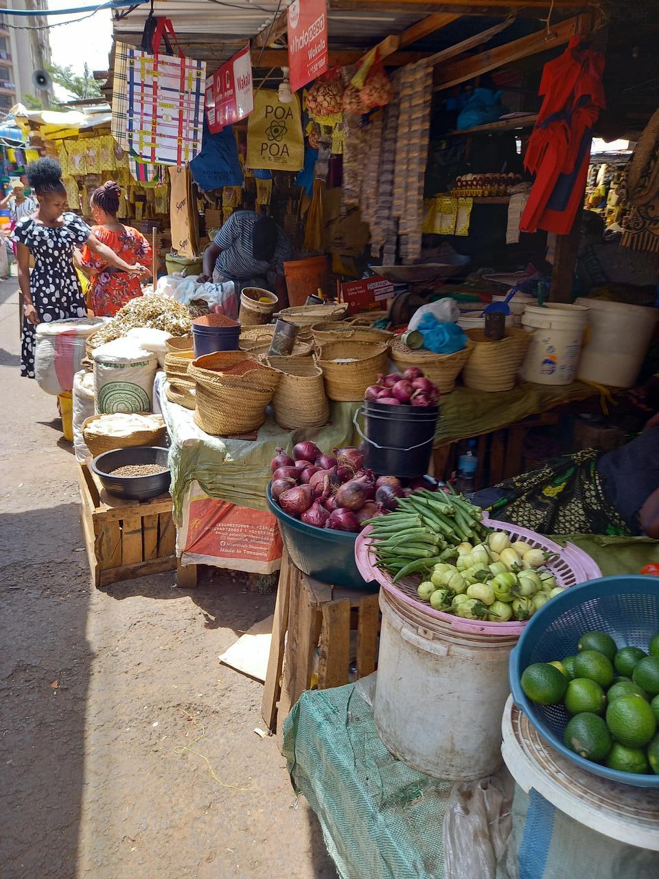 Es gibt in jeder Himmelsrichtung einen Eingang und in jedem Bereich gibt es ein anderes Angebot. Wir starten beim Obst und Gemüse.