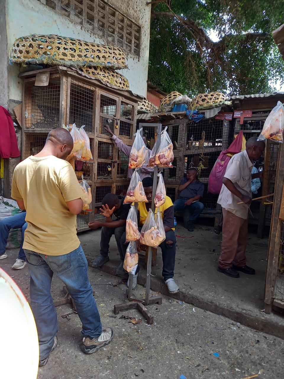 Hühner werden vor Ort geschlachtet und zum Verkauf angeboten. Mit Tieren geht man nicht sonderlich zimperlich um.