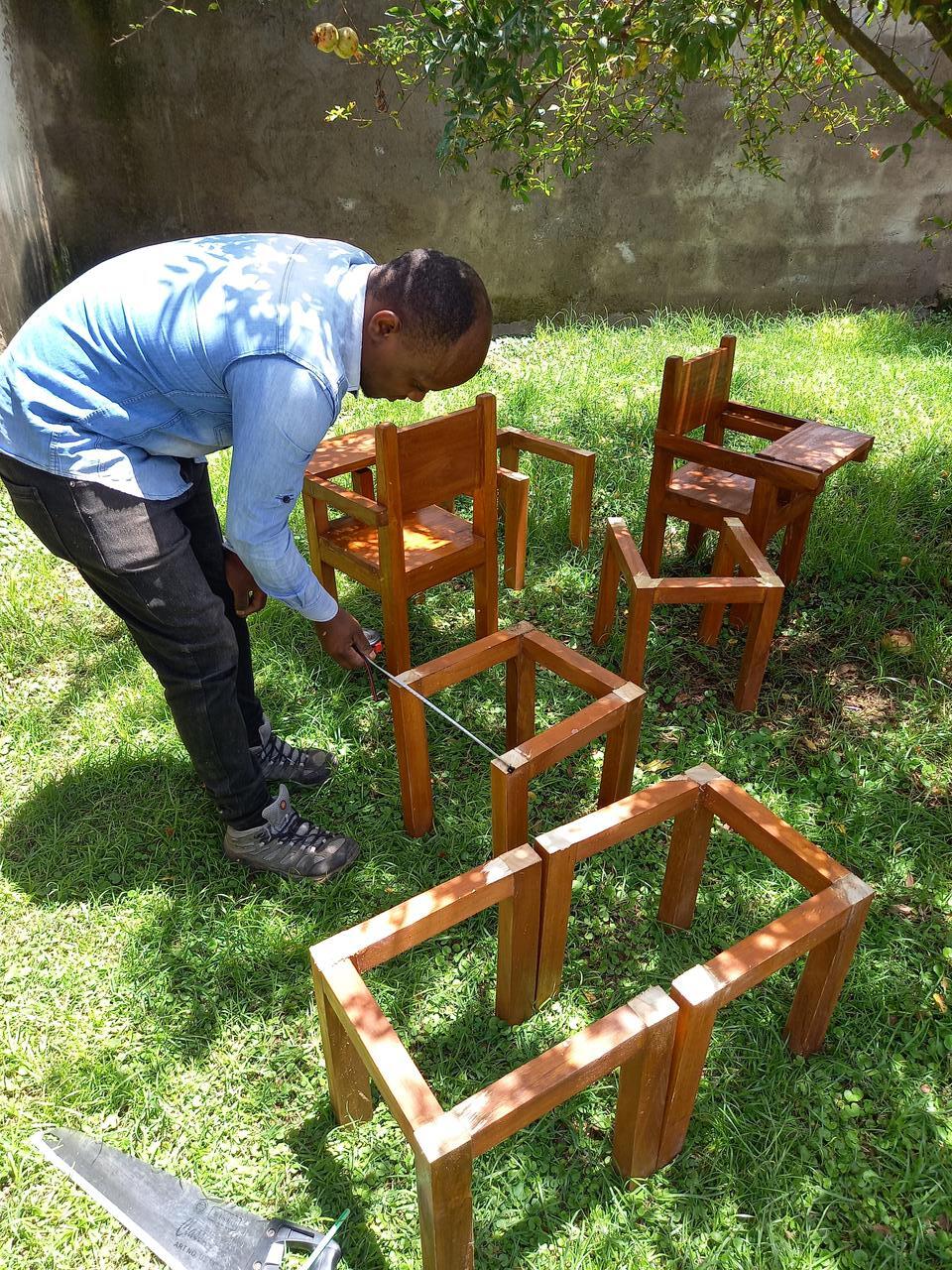 Diese Stühle waren zwar recht praktisch zum Füttern, aber die Kinder haben damit geschaukelt und sie zum Umsturz gebracht. Ich konnte diese Gefahrenquellen nicht mehr ertragen. Kurzerhand wurde ein Fundi gerufen