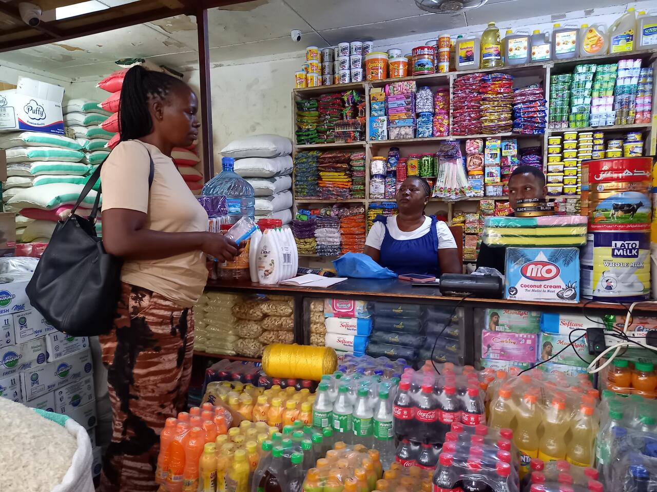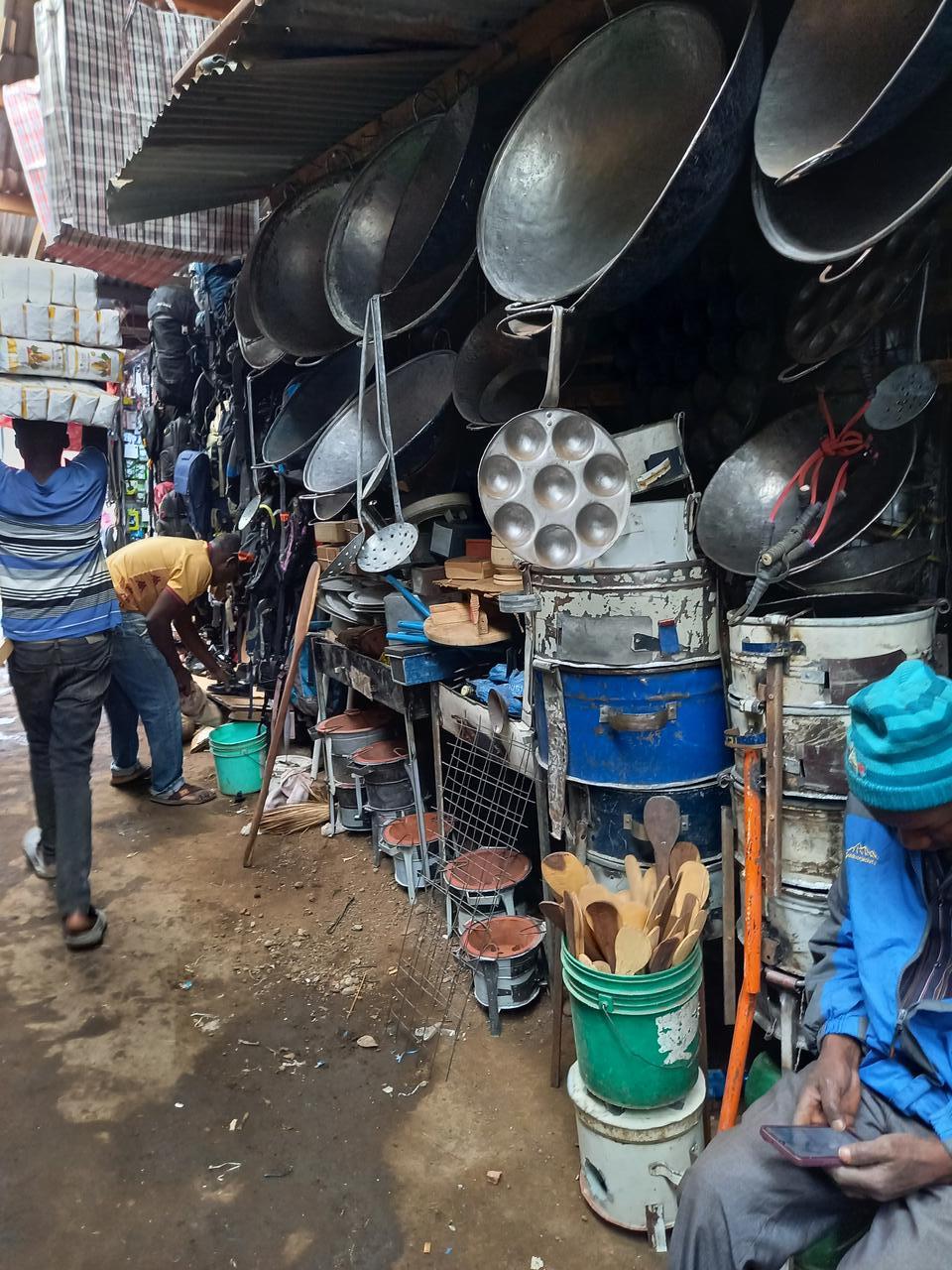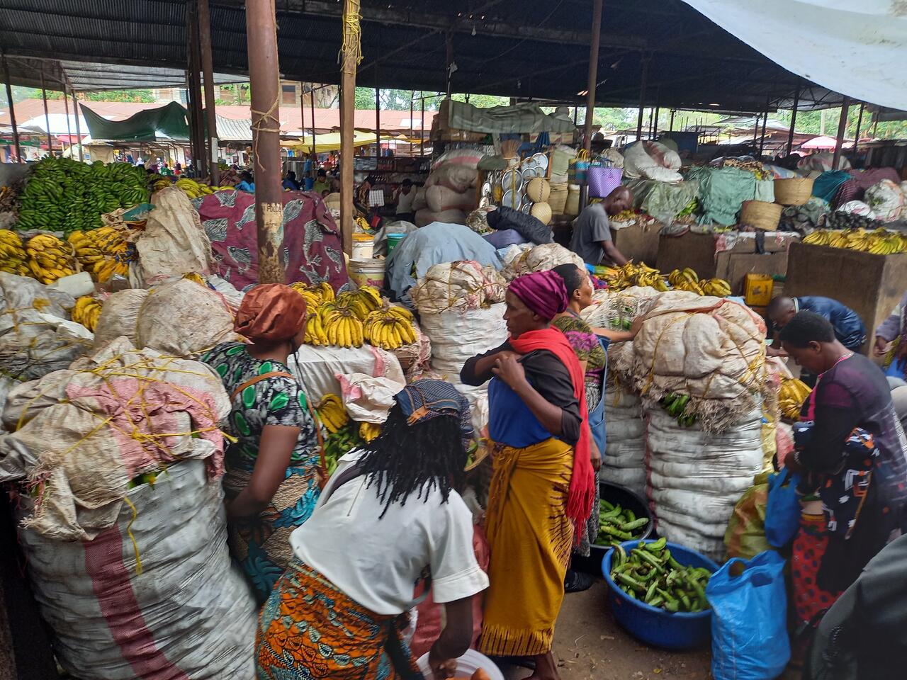 Wir gehen mit Nancy kreuz und quer über den Markt, um die Ware abzuholen und zu bezahlen.