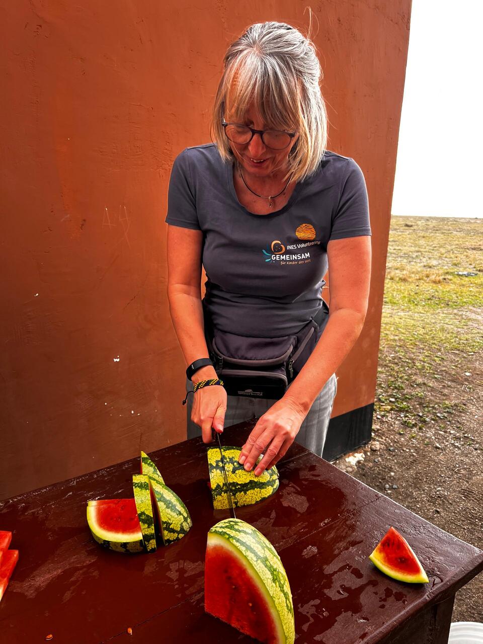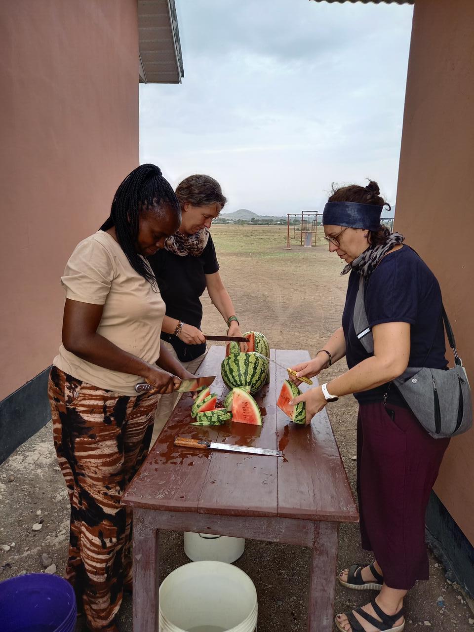 Ein Moment der Erinnerungen. In den Anfängen hatten wir weder richtige Messer noch einen Tisch. Stets mussten wir improvisieren. Die Kinder waren immer hungrig und durstig. Das ist zumindest für diese Kinder Geschichte.