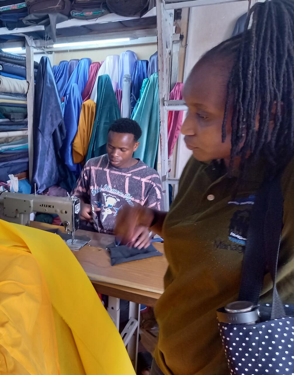 Wir schauen uns zunächst nach einem geeigneten Stoff um. Das Geld dafür hat Rita gespendet. Doch in diesem Shop werden wir uns preislich nicht einig.