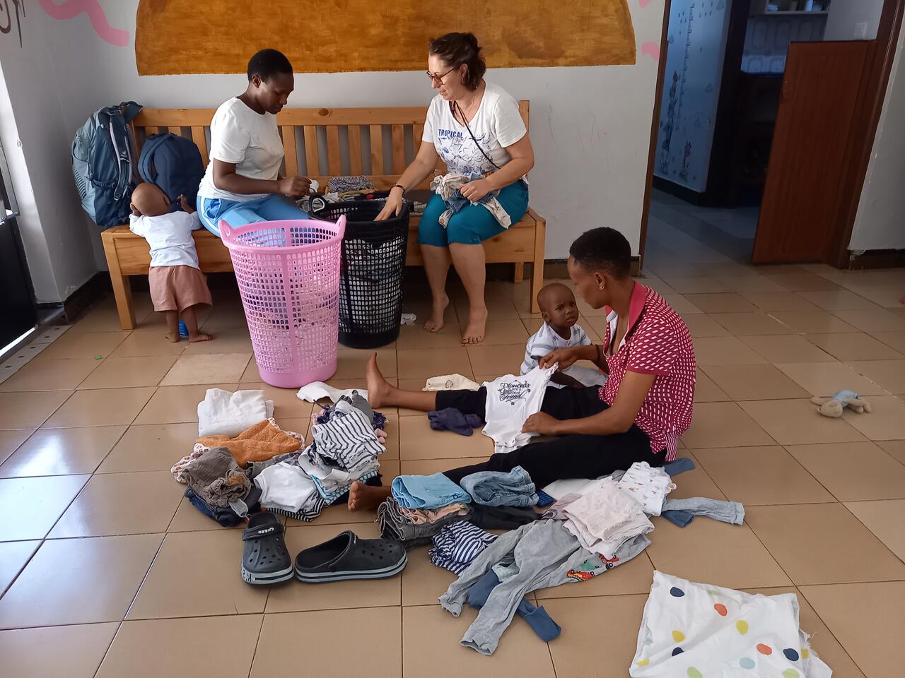 Kaum haben wir das Baby Haus betreten, werden überall helfende Hände gebraucht.