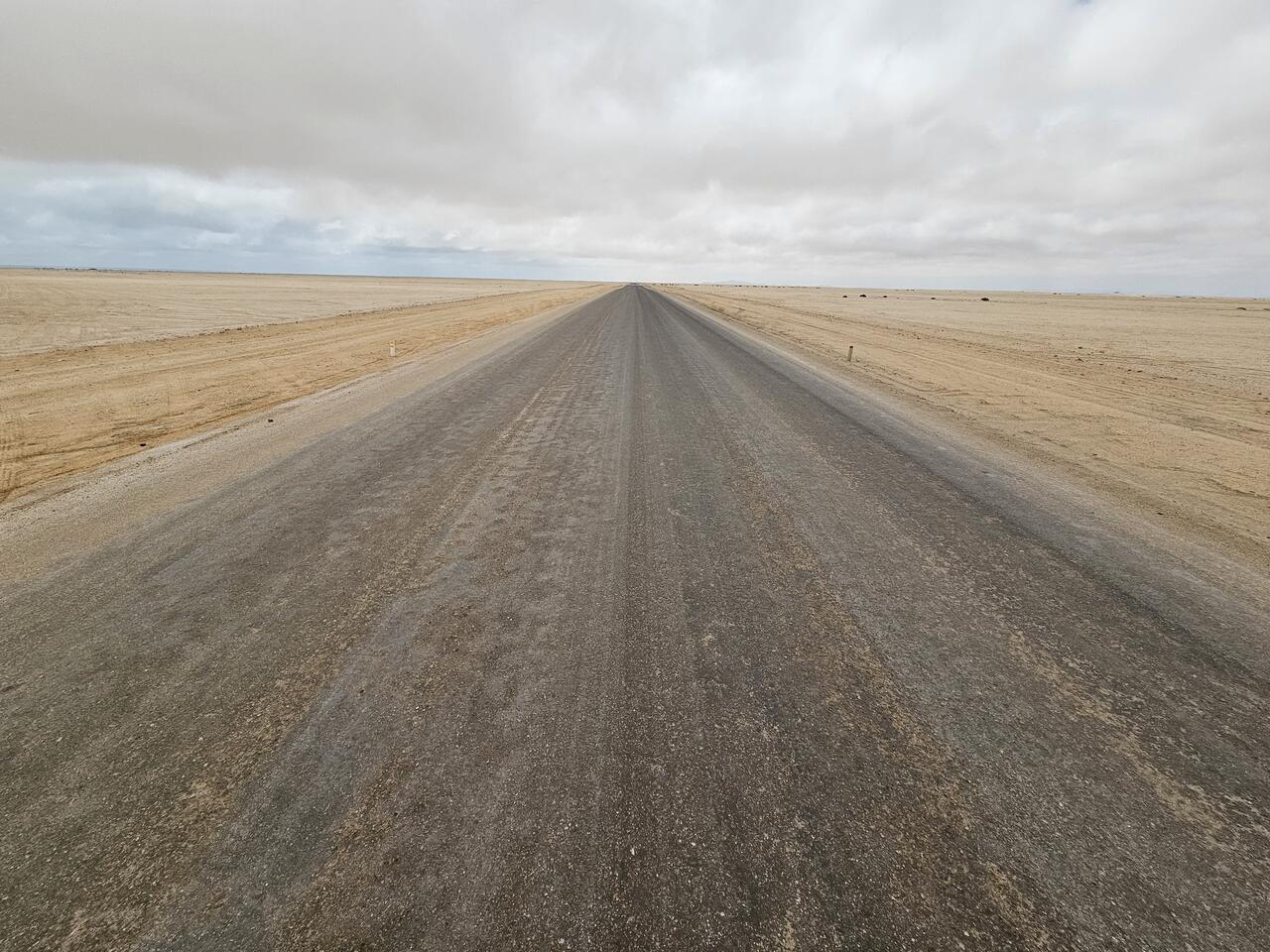 300 km pro Tag geradeaus, das könnte langweilig werden Immerhin gestattet die Salt Road eine Maximalgeschwindigkeit von 120 km/h, wir werden auch tatsächlich mal von einem Auto überhalt, zwei weitere begegnen uns pro Vietelstunde.