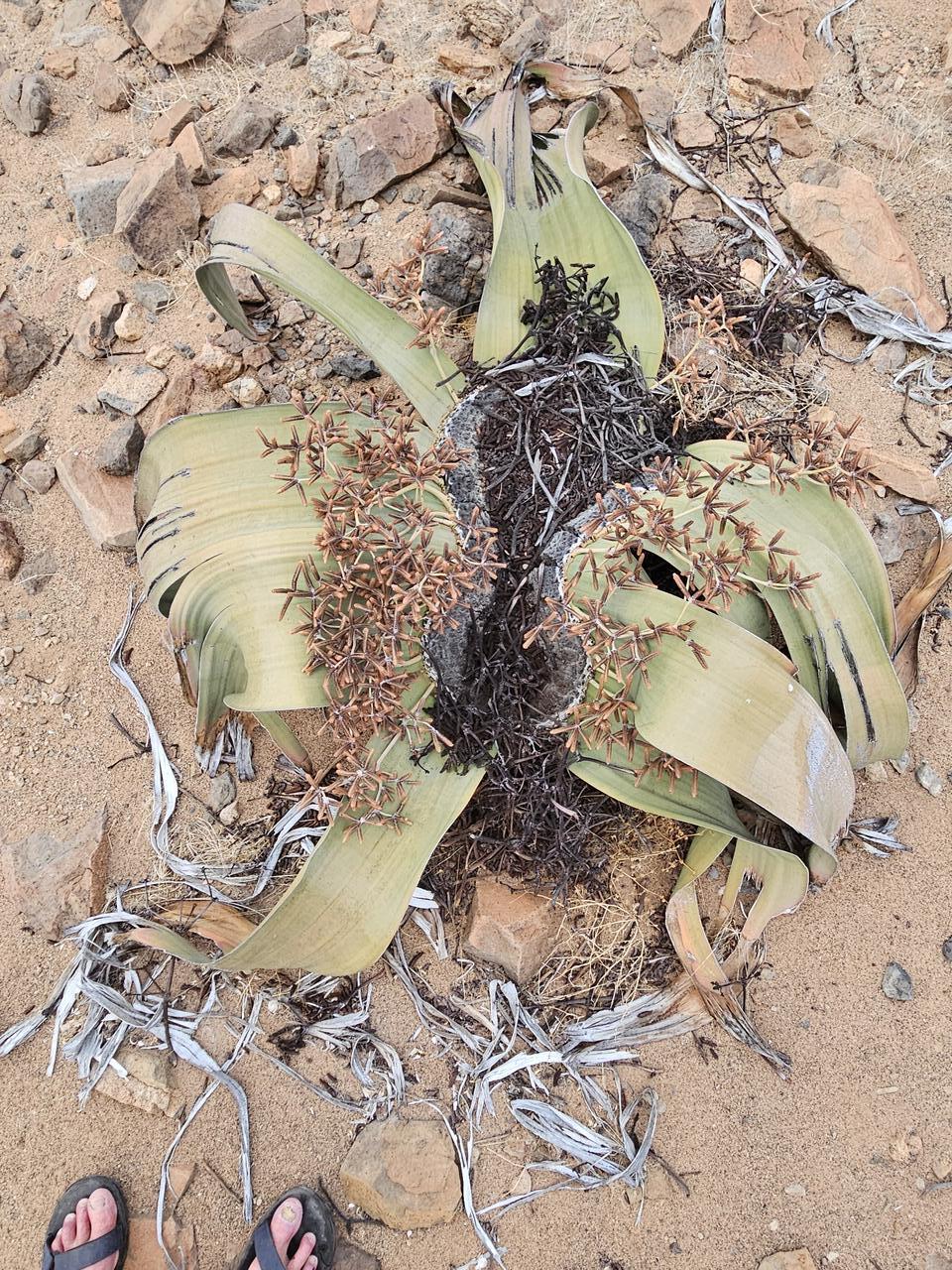 Nachts muß ich mal raus, um ein Geschäft zu erledigen. Ich spende einer Welwitschia wieder etwas Liqudität.
